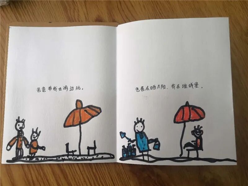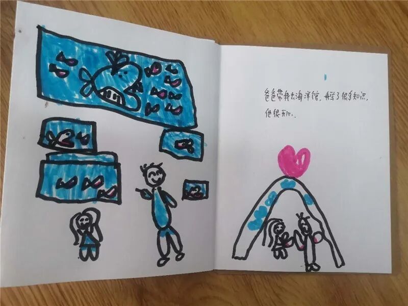 父爱如山,父爱似海父亲是一艘船载着我们的期待和梦想父亲是一棵树为我们遮挡风雪和严寒父亲是一盏灯带给我们光明和温暖“你也许听过《我爸爸》这本绘本,但一定不知道这里有这样一群孩子,用朴素的话语,表达着对爸爸的爱。”6月18日,乐山市实验幼儿园大七班开展了一场与“父爱”有关的创意活动。孩子们通过听绘本、绘制和爸爸的温情时刻、创作与爸爸的精彩故事、讲述精彩片段等,谱写了一首爱的旋律。现在我们就一起看看那些美好的瞬间吧!绘制我和爸爸的温情时刻有的孩子说:我的爸爸是个大力士!有的孩子说:爸爸很喜欢抽烟,这是他的缺点。但是他是我们班上的领导、指挥大家,每个人都有缺点,我们应该原谅他。还有的孩子说:“爸爸,谢谢你一直陪伴我,我爱你。”创作我和爸爸的精彩故事来看看孩子们画了些什么吧!笑笑:我和爸爸去海洋馆,我学到了很多知识,他很开心。我们来到沙滩去游泳,遇到了鲸鱼,鲸鱼追着我们,我们拼命的游呀游呀,终于游到了岸上,躲过了鲸鱼的追捕。宸宸:爸爸带我去海湾,爸爸在晒太阳,我在堆城堡。爸爸带我去海底玩,一不小心遇到了鲨鱼,我喊爸爸快游呀。后来,我和爸爸在海底捞鱼,我们把捞到的鱼放进了袋子里。然后,我们上岸了收拾东西,坐车回到了家。一起来听听下面两位孩子谱写的好听的故事吧!轩轩与爸爸的故事小昂与爸爸的故事有意义的父亲节活动已然结束,但是孩子们对父亲的爱还在滋养。通过此次活动,启发孩子对父亲的敬爱与感激,增进了父亲与孩子之间的感情,也让家长们明白孩子的成长路上有爸爸的陪伴是多么重要。亲爱的家长朋友们,在繁忙的工作之余请放下手机,放下疲惫,留点时间陪伴孩子,让孩子在成长过程中留下更多美好的回忆。