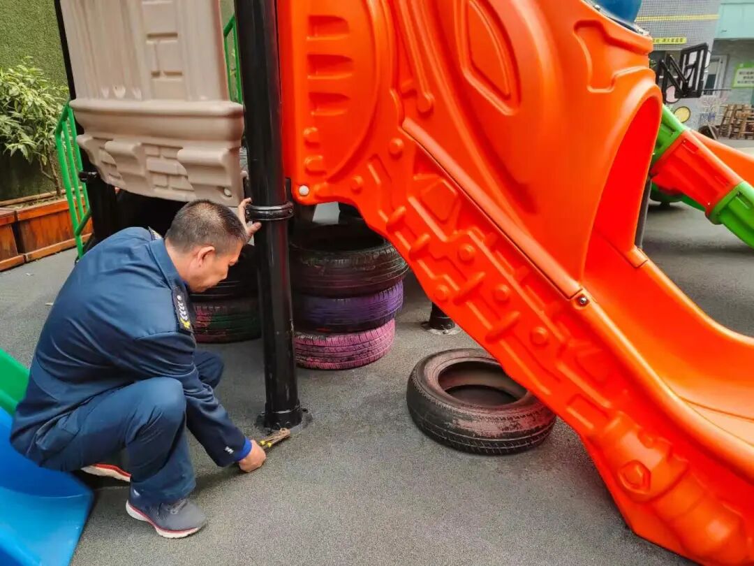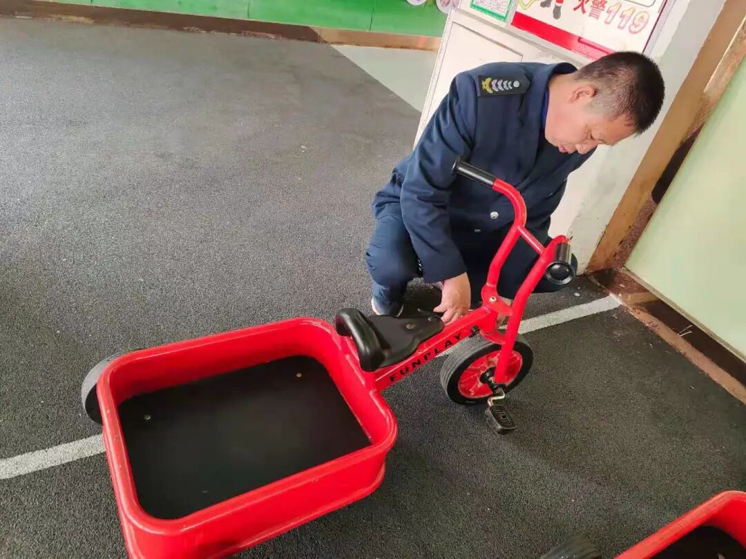 开学前一周,保安师傅以及安全负责一起开展园内安全隐患排查工作,对幼儿园的一键报警设备、预警系统、户外器械、水电设备、各个走廊的消防装备等都进行仔细的排查,发现隐患及时上报,及时解决,为幼儿一日生活安全保驾护航。