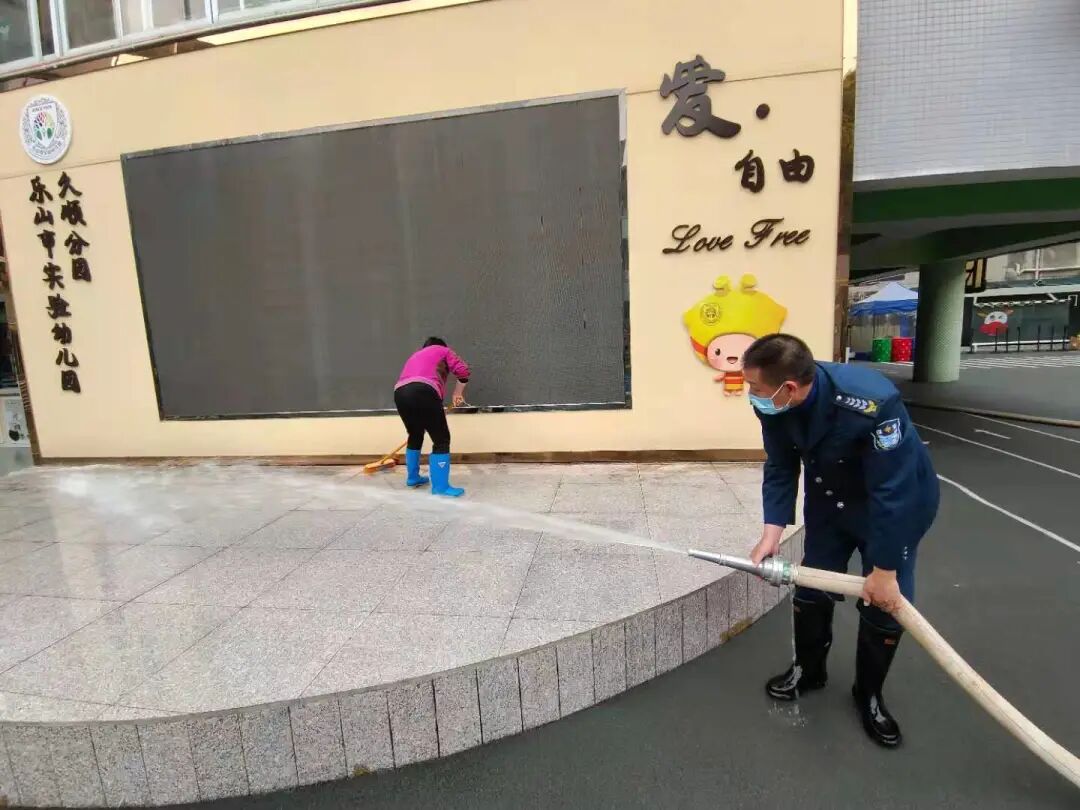 2021年2月23日全园教师及后勤工作人员对校园户外场地、大型体育器械、楼道、班级、功能区、厨房等进行了全面无死角的大扫除及消毒工作,确保每个角落干净、整洁。