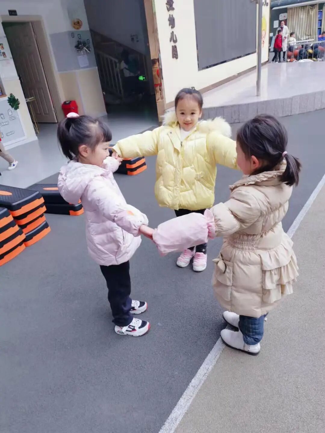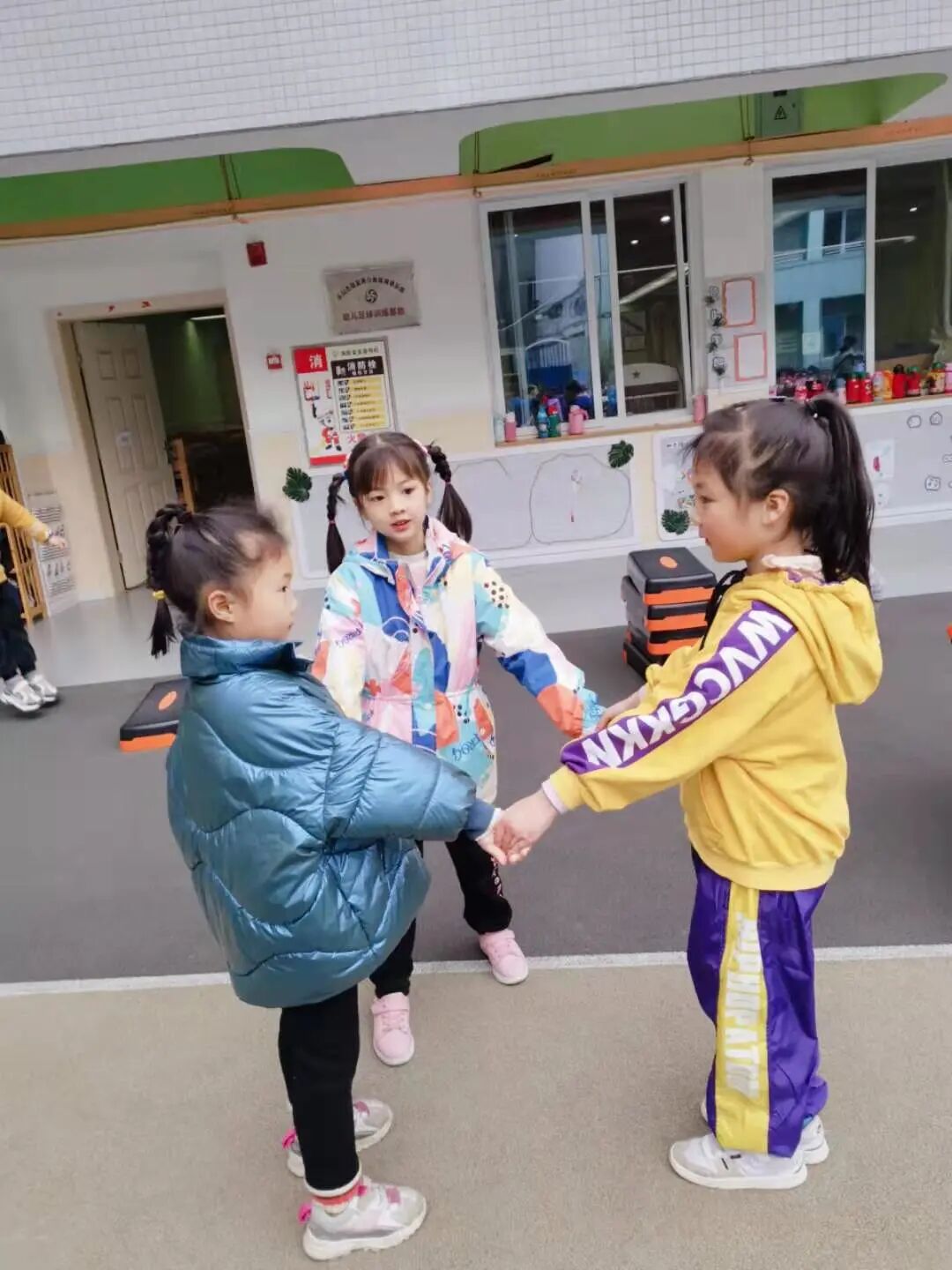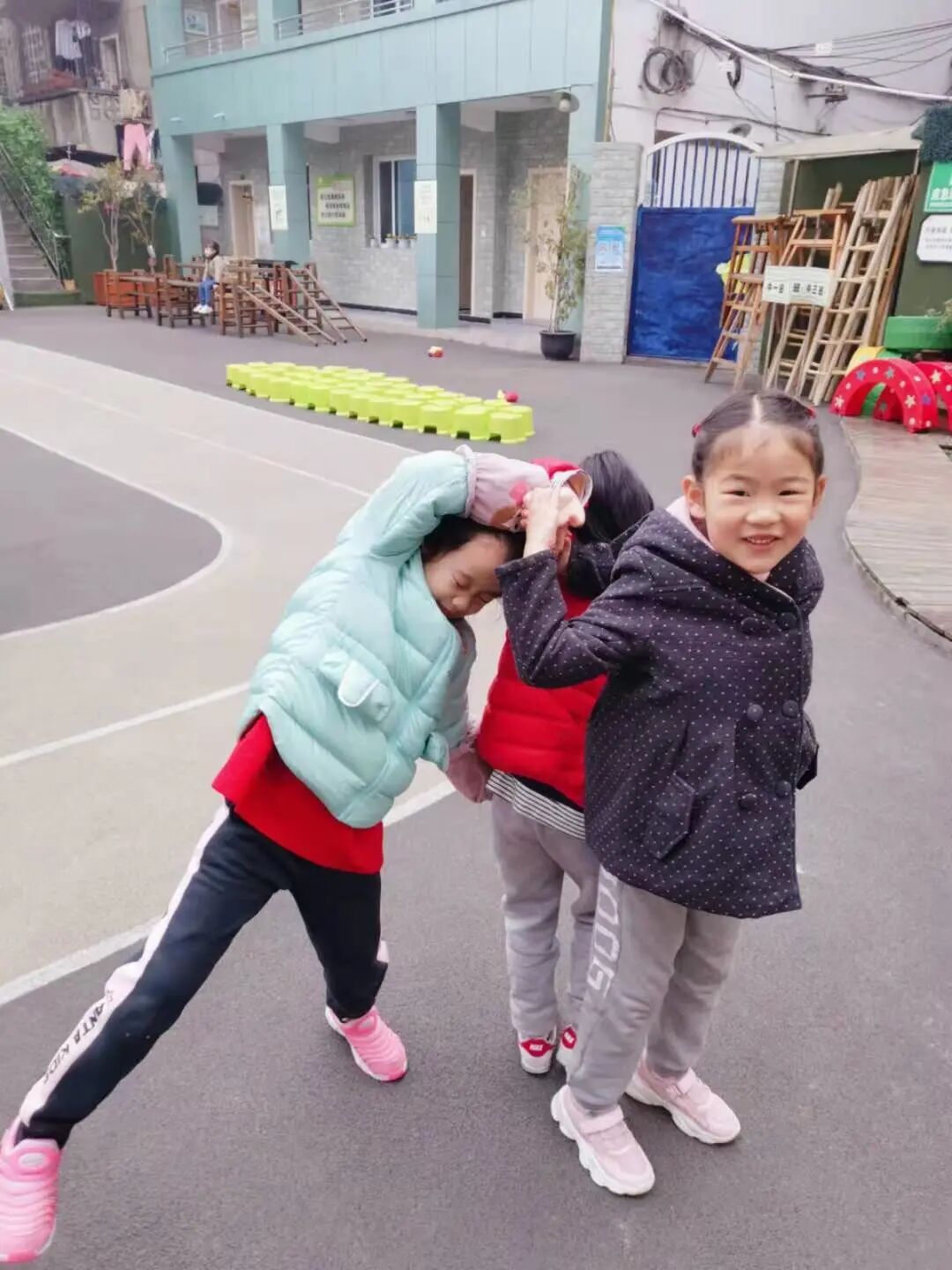 两个孩子手拉手,边摆动手臂边唱歌谣,“炒、炒、炒黄豆,炒好黄豆翻跟斗!”当念到“翻跟斗”时,两个人同时翻身,手不松开,背对背,继续摆动念儿歌,再翻转回来。待熟练之后,也可以挑战三个人一起游戏,但是一定要注意安全哦!