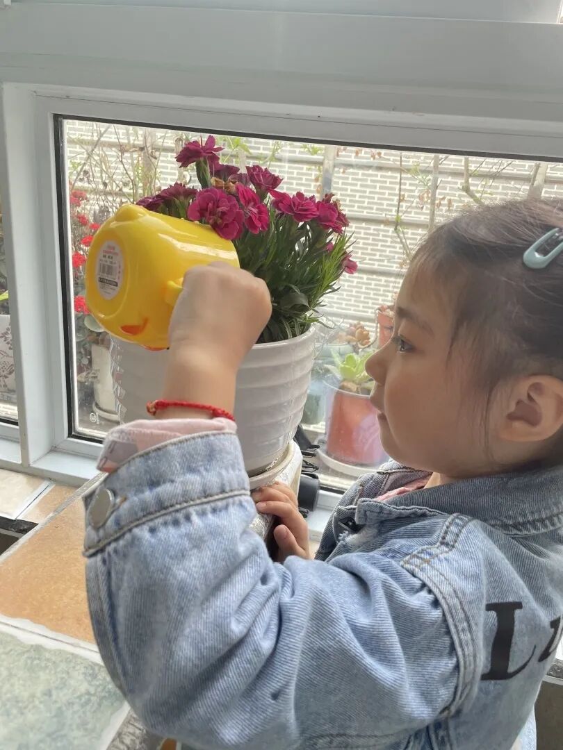 魏希冉:“我们漱口没用完的水可以用来浇花。”