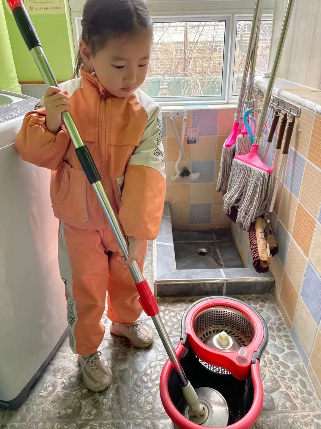 邵瑾萱:“洗拖把可以用桶洗。”