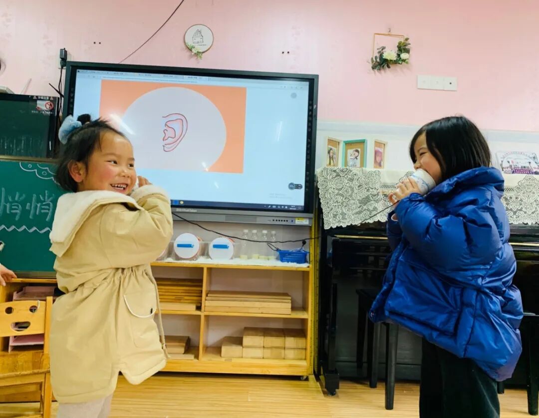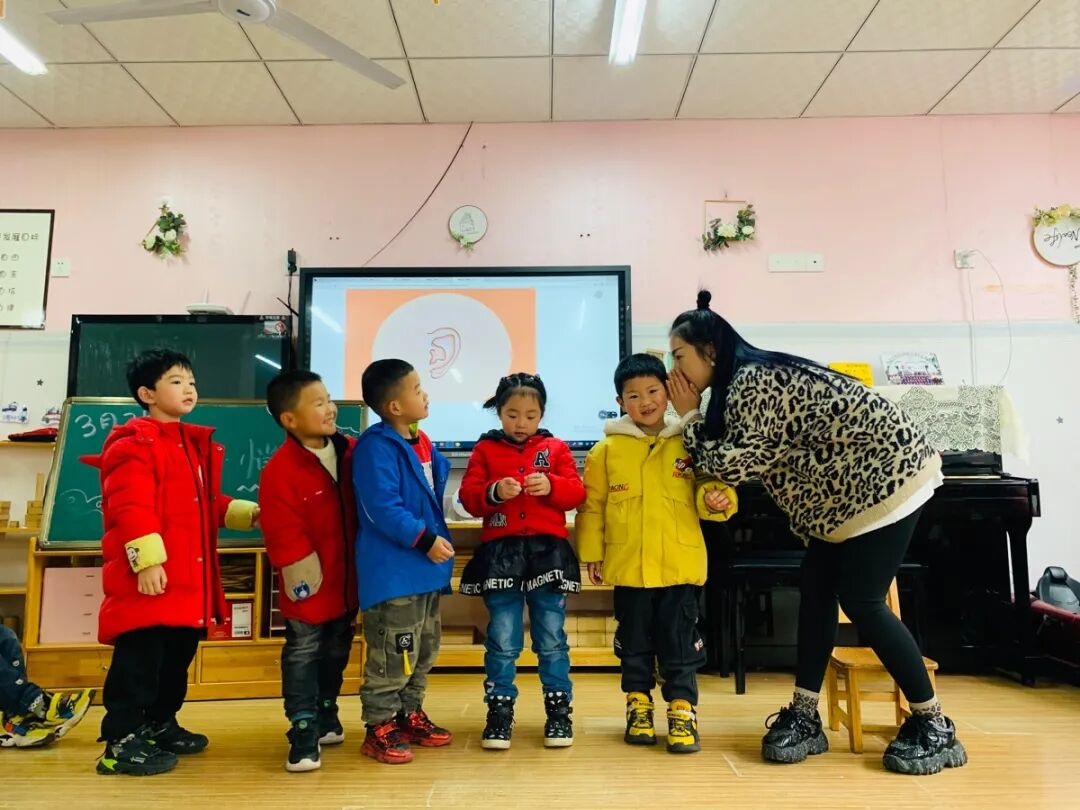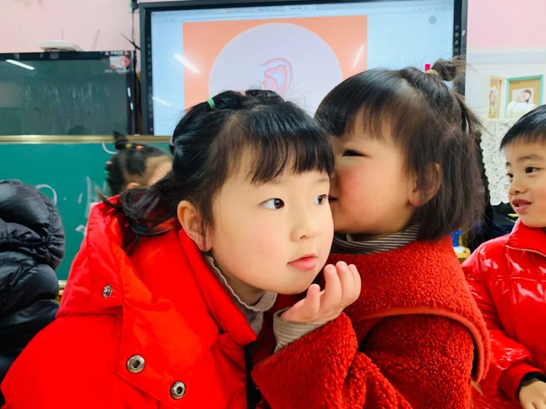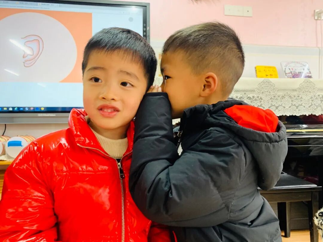 《听声辨位》、《传声筒》、《悄悄话传递》等有趣的游戏,让孩子们耳目一新,他们用自己的耳朵去倾听、去发现、去感受耳朵的神奇之处。