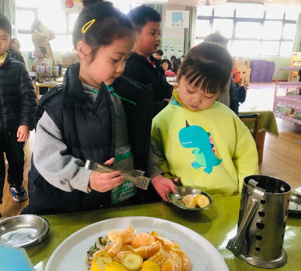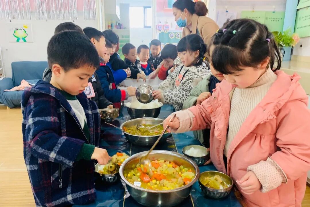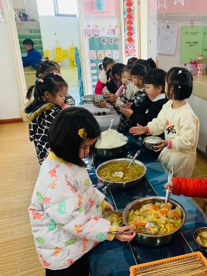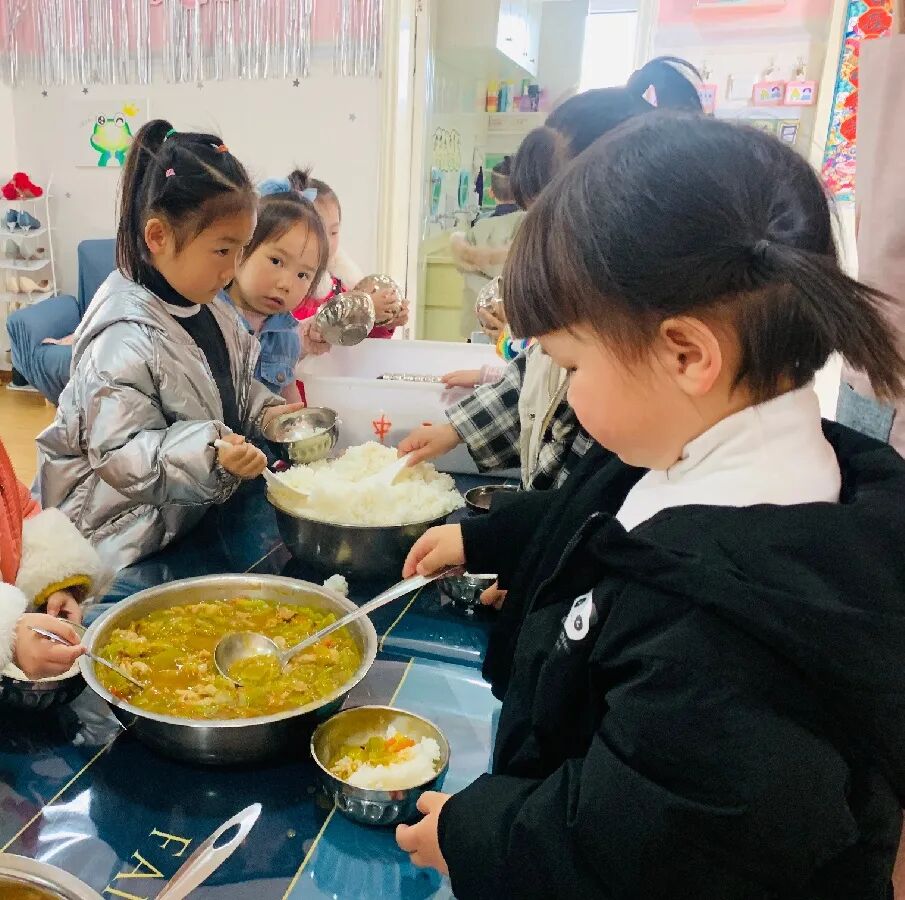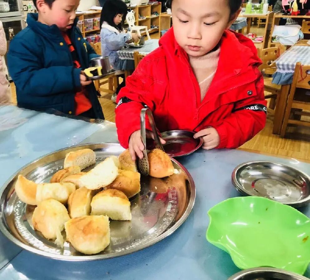 老师更多的是孩子自主、自助进餐的支持者,也是幼儿快乐进餐的陪伴者。