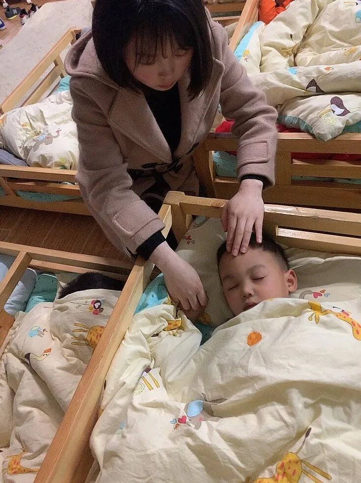 老师们时刻观察宝贝们睡觉是否出汗,是否盖好了小被子等......看着宝贝们甜甜的睡容老师的心里才踏实。