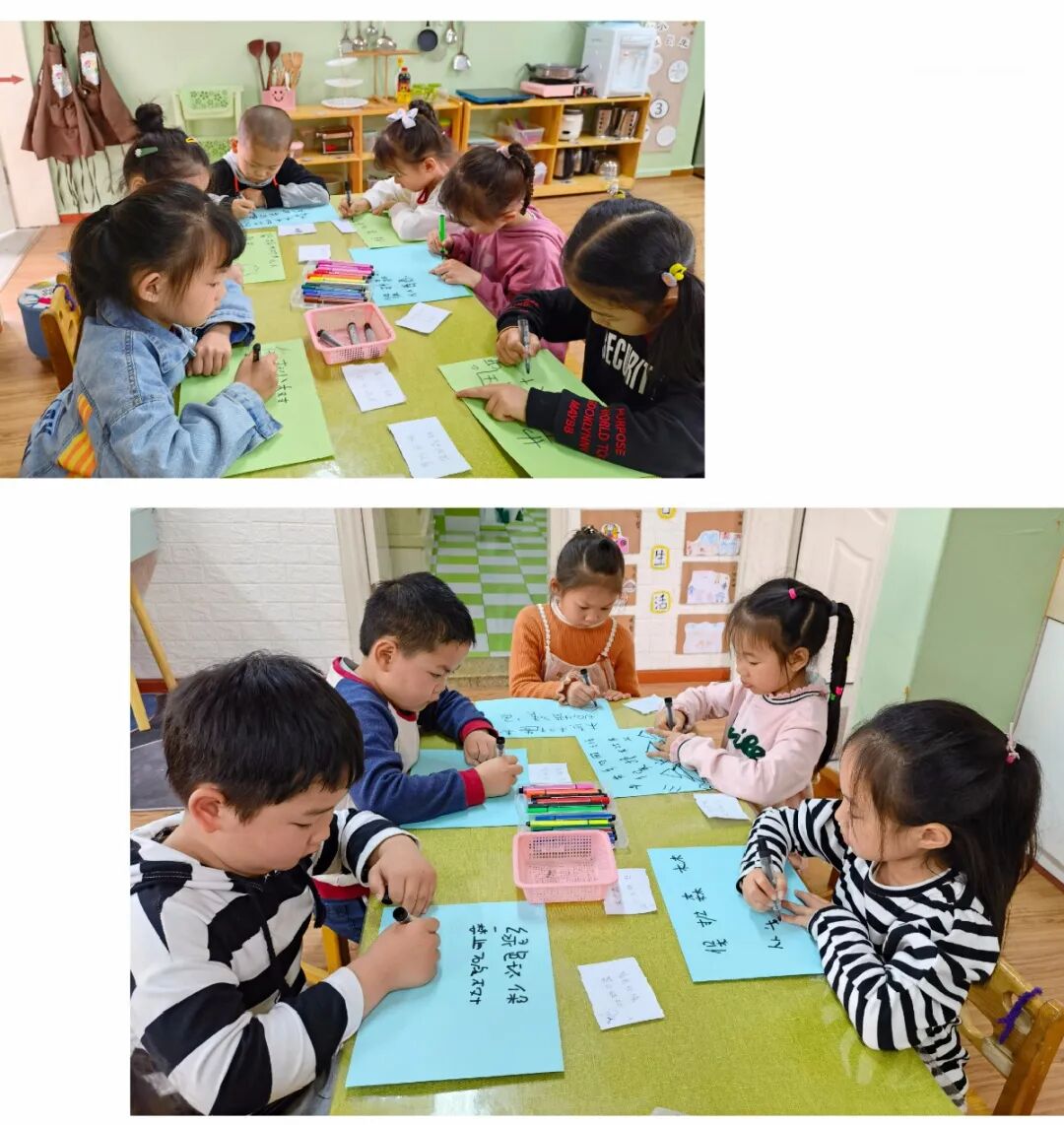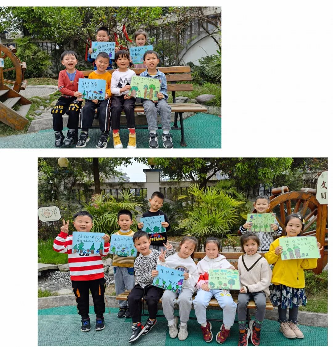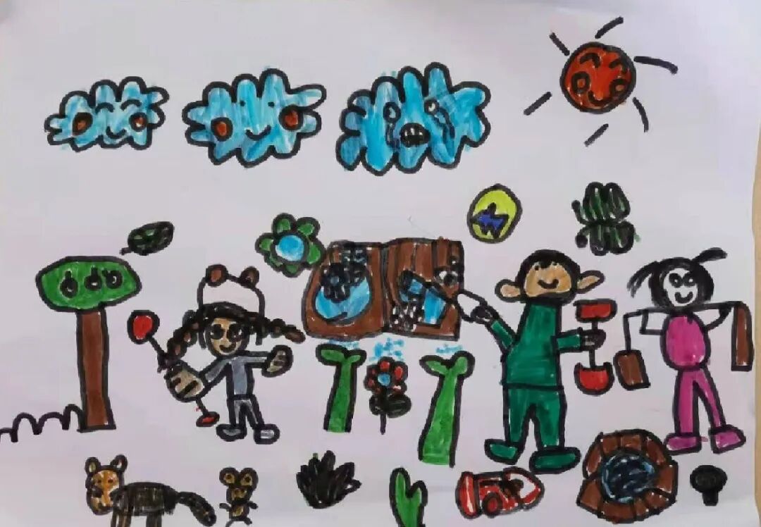 孩子们畅享大自然的美好,通过指尖转换成图画、符号、文字,表达他们对大自然的热爱,一幅幅以“保护森林”为主题的绘画手工作品,传递着满满的正能量。