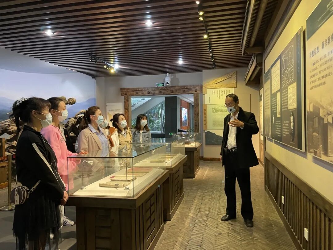 党员老师们怀着崇敬的心情跟随着讲解员的脚步来到了展览园区,听讲解员娓娓道来郭沫若先生克服重重困难依然刻苦求学的经历,以及他让人叹为观止的文学造诣,行云流水的书法,融汇贯通的各国语言,敢于斗争,勇往直前的精神深深地感染了在场的老师们。