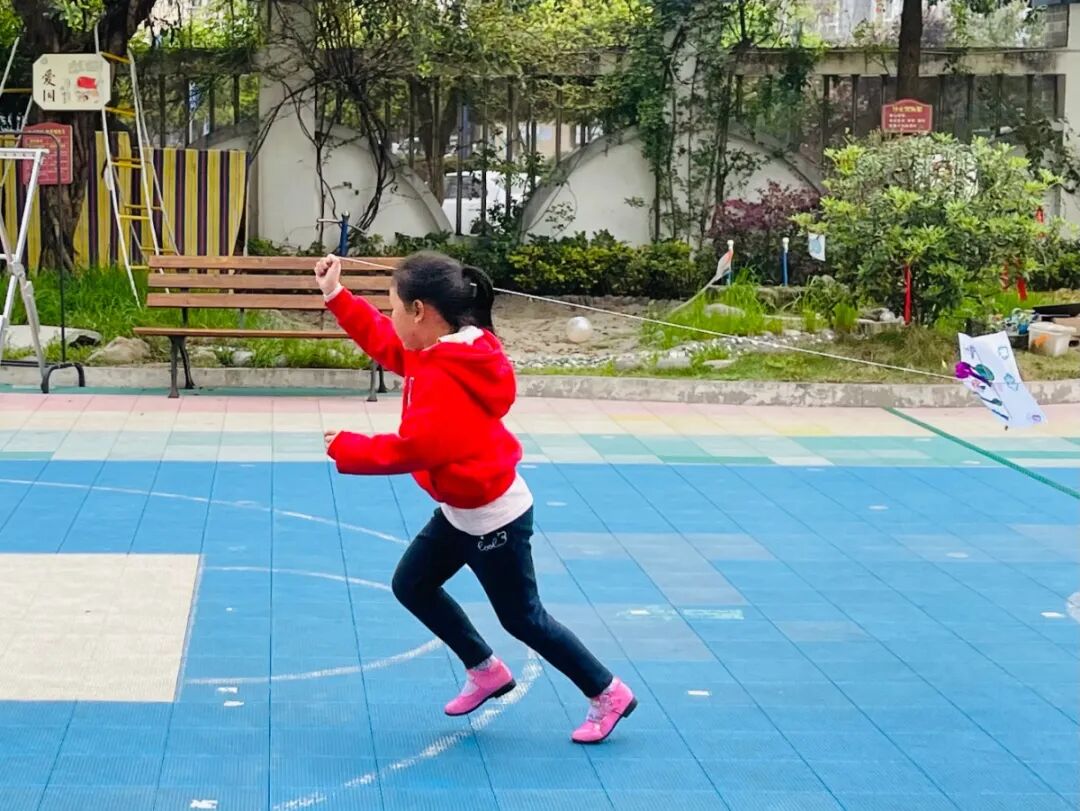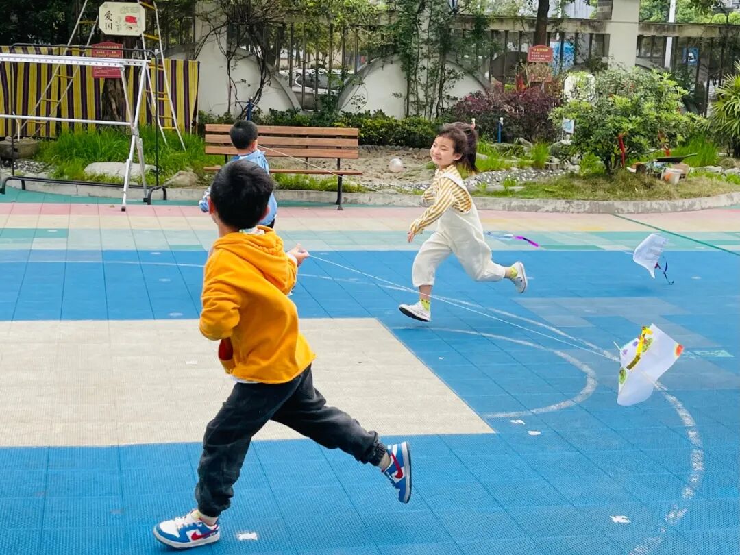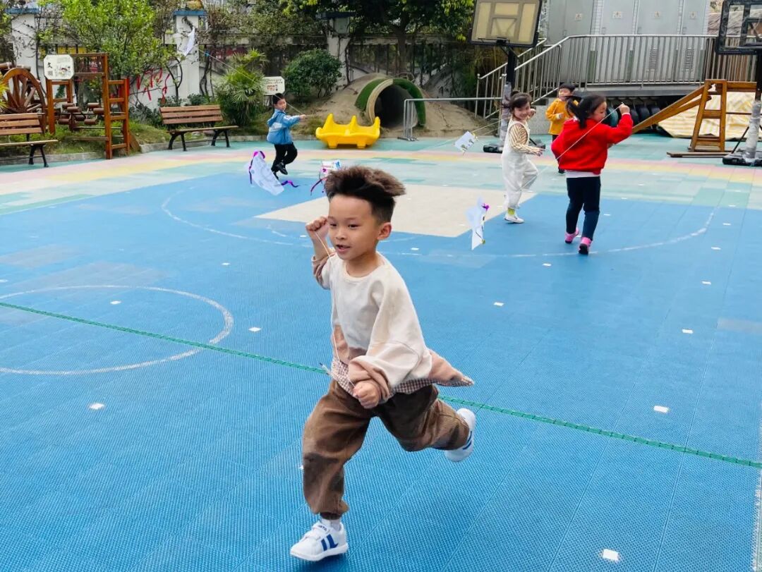 宝贝们沐浴着春光,奔跑着放飞风筝