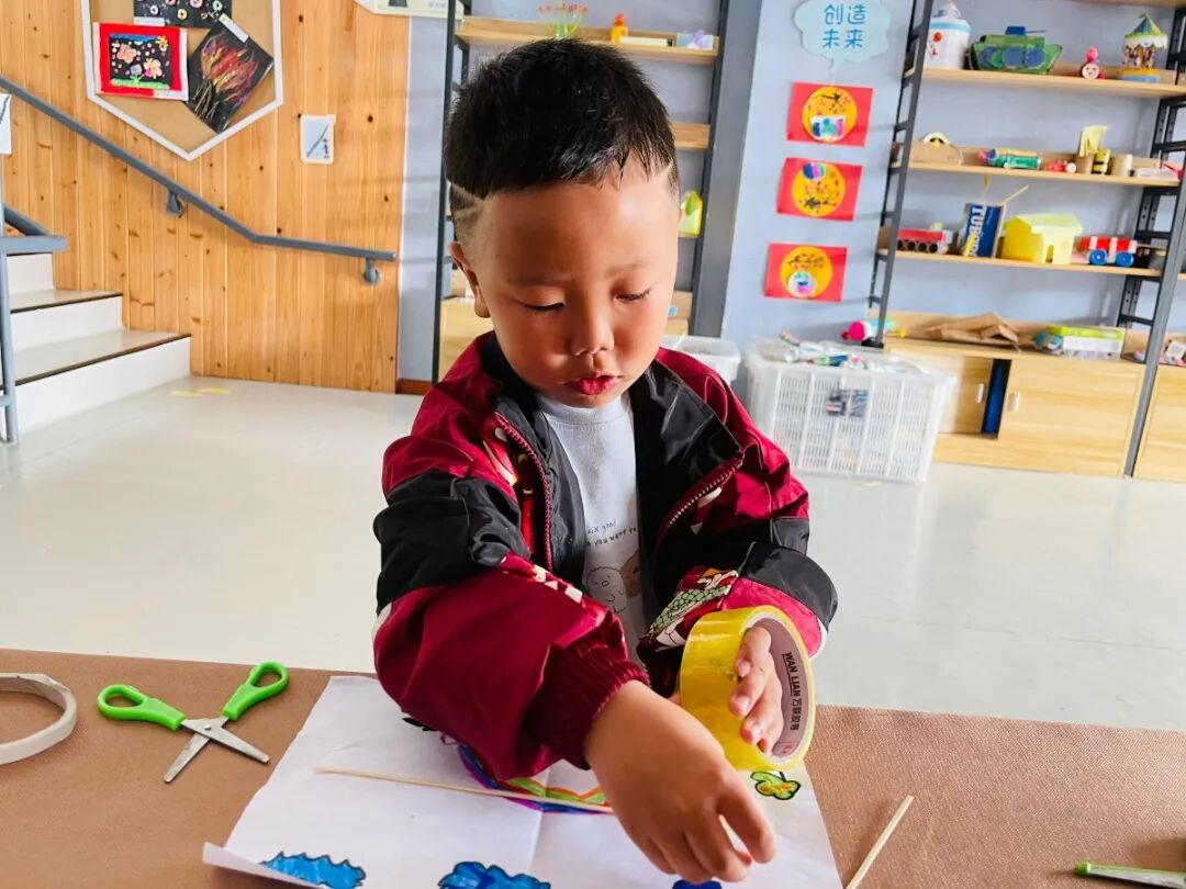 宸宸:还要用棍子把风筝撑起来。