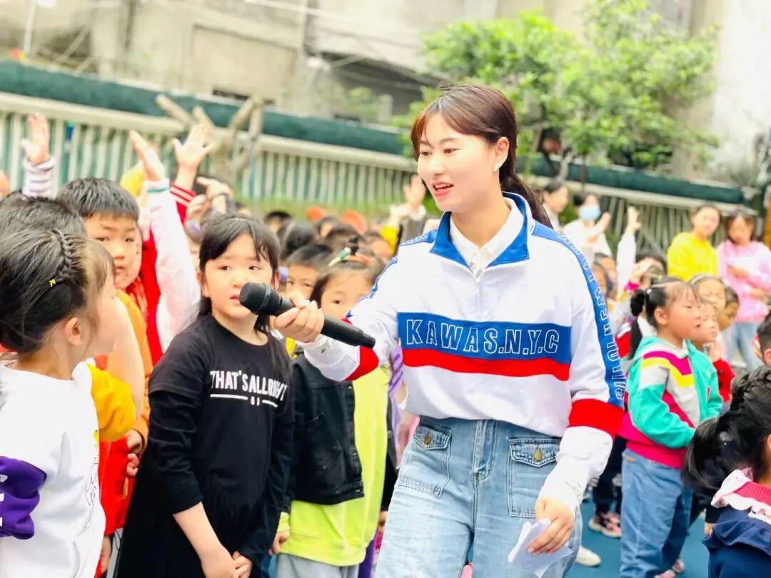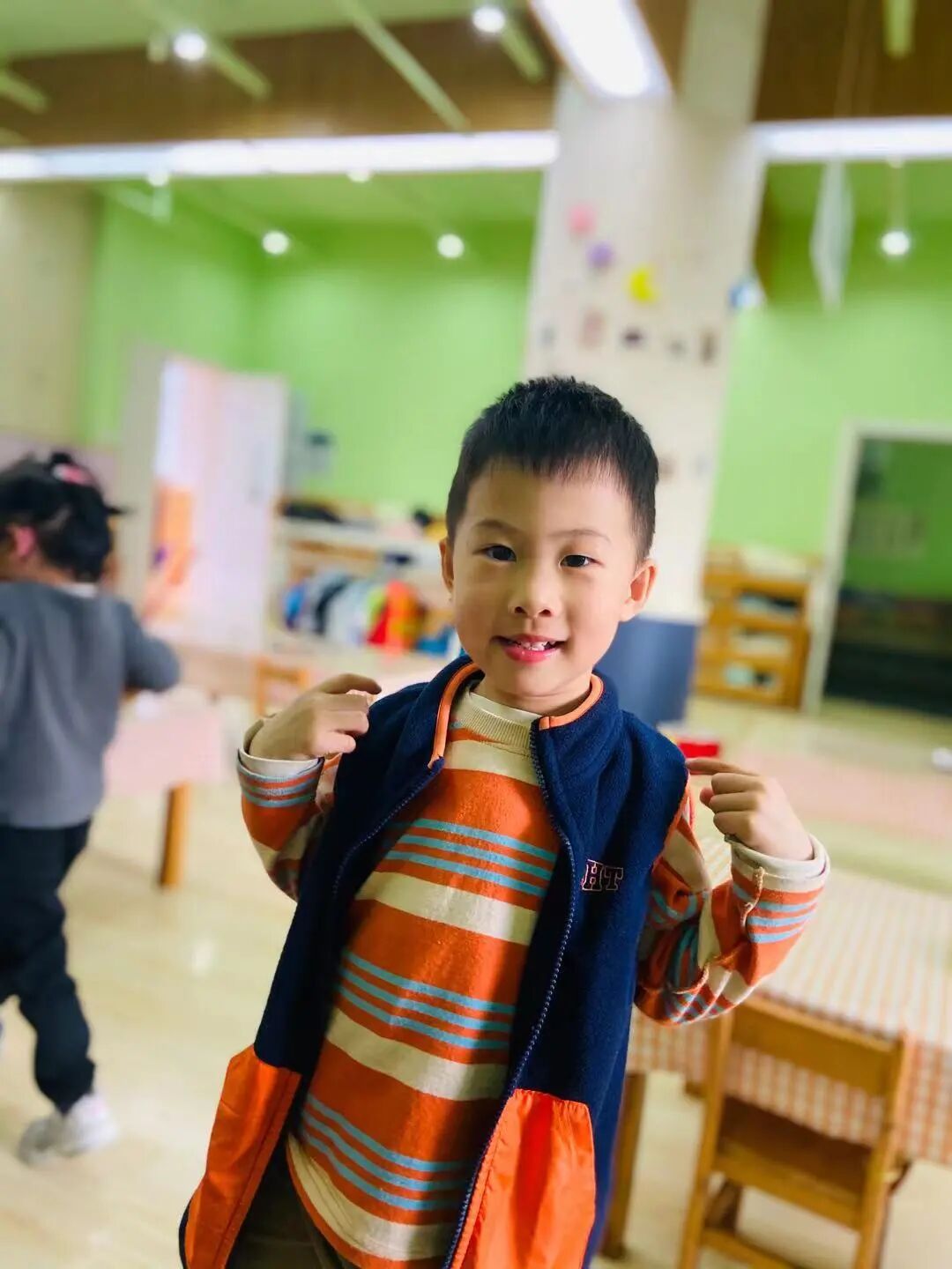 接下来上场的是小一班的两个小可爱,他们的服装叫:“蛋糕裙套装”,使用了废旧纸箱 皱纹纸。
