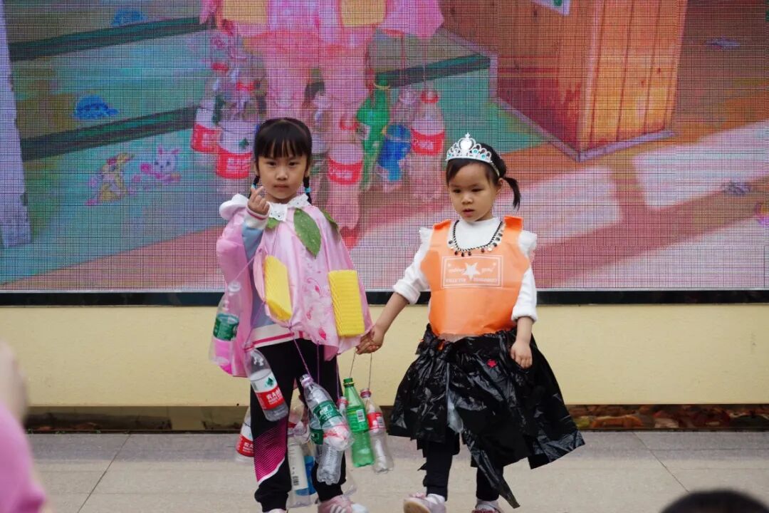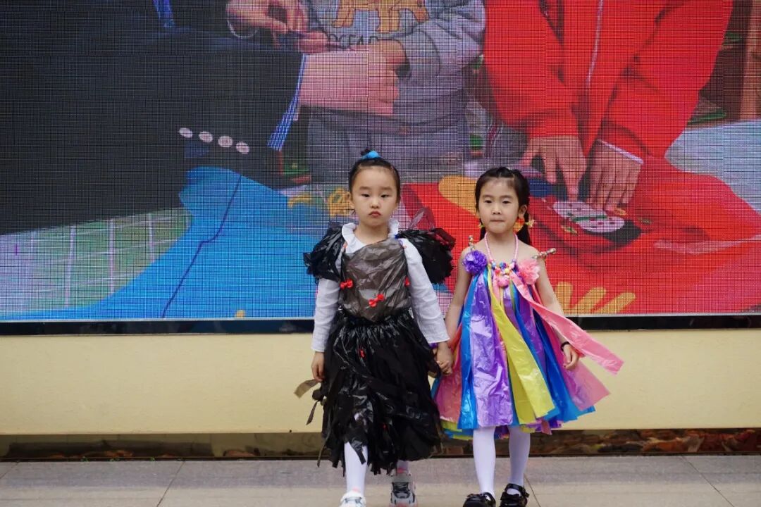 活动前期,孩子们和老师一起用环保材料做了各式各样的环保服装。