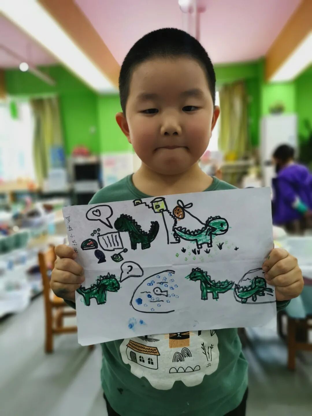 “我的恐龙故事,有一天恐龙遇到了麻烦然后它一直在寻找解决问题的办法……”