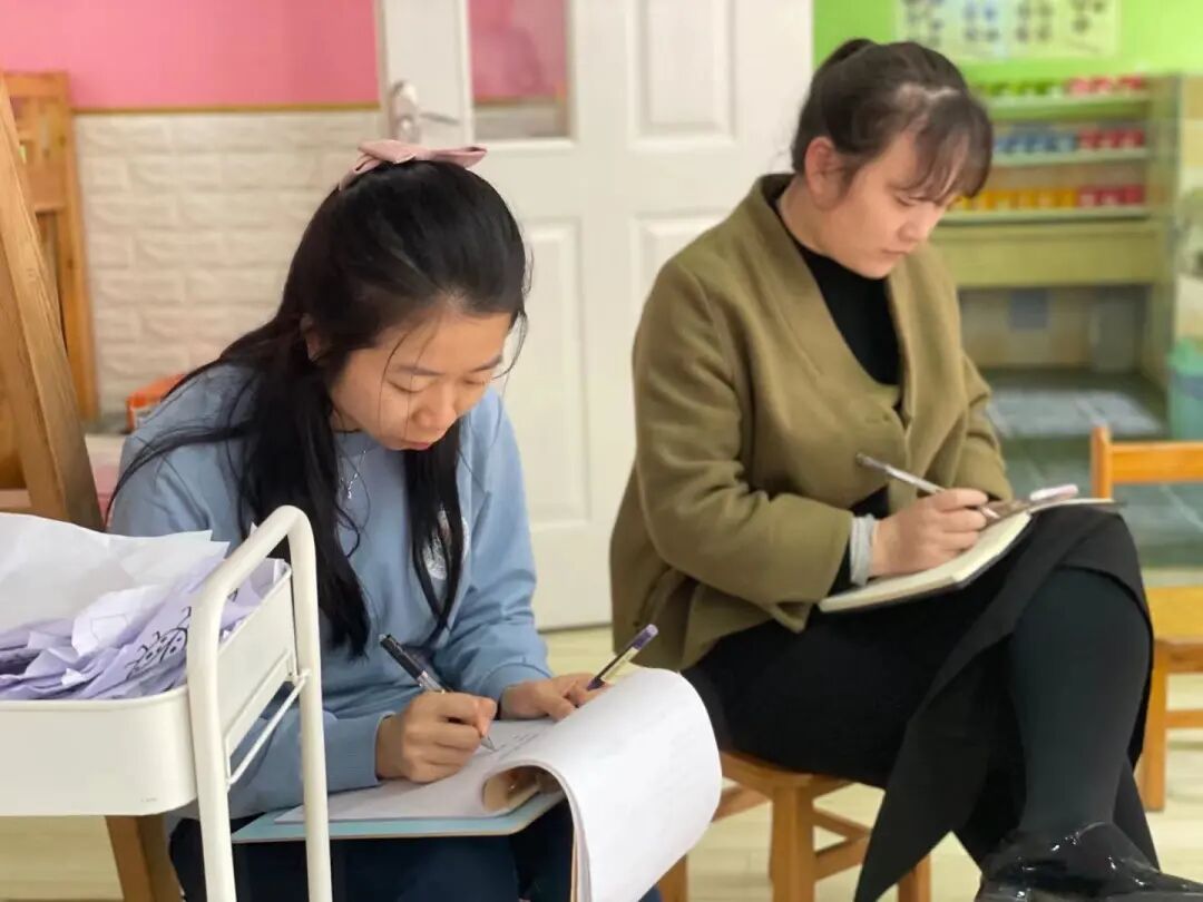 老师们通过自我反思,提出半日活动中自己班级的优点与优化措施。现场教研气氛热烈,元气满满,老师们积极思考、主动参与到研讨互动中来。