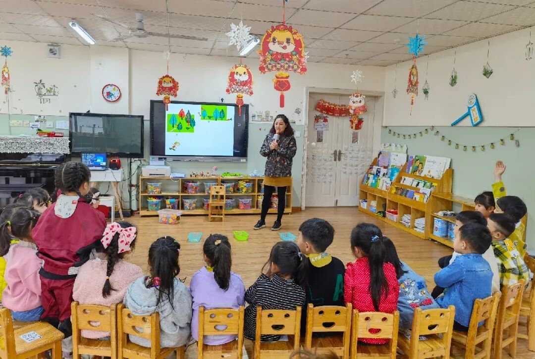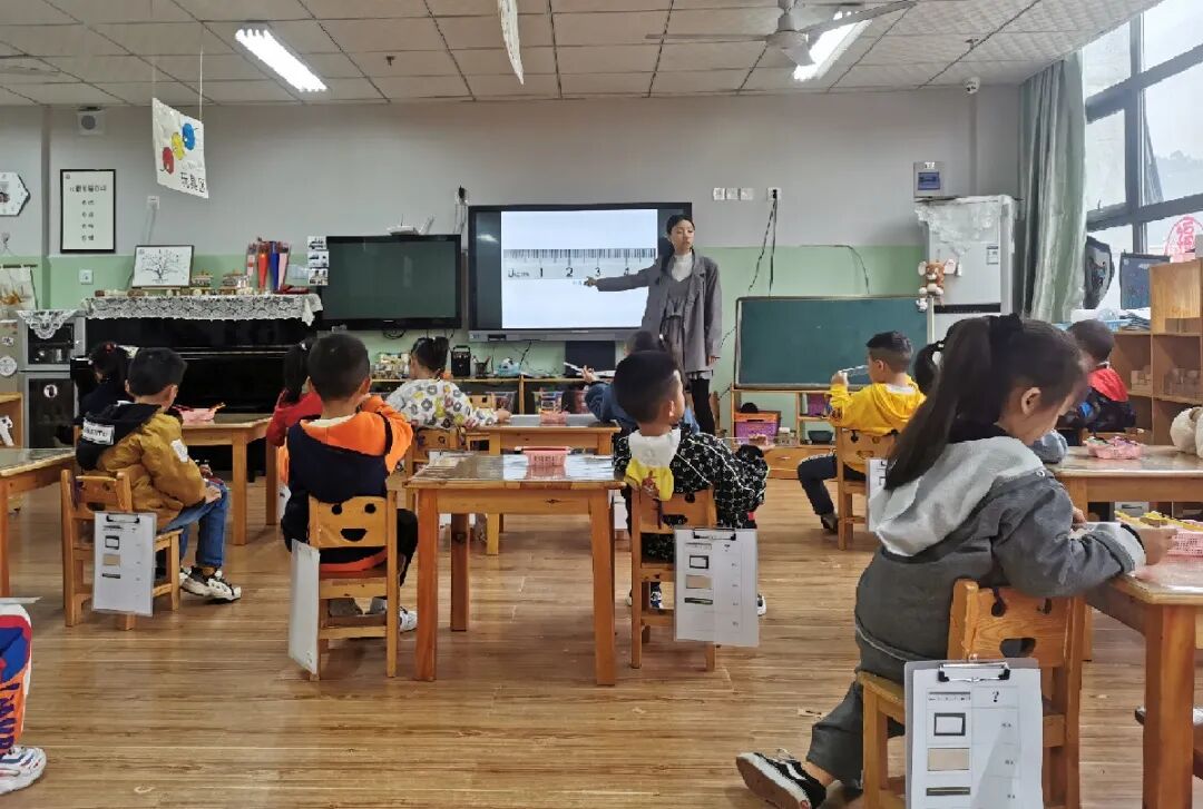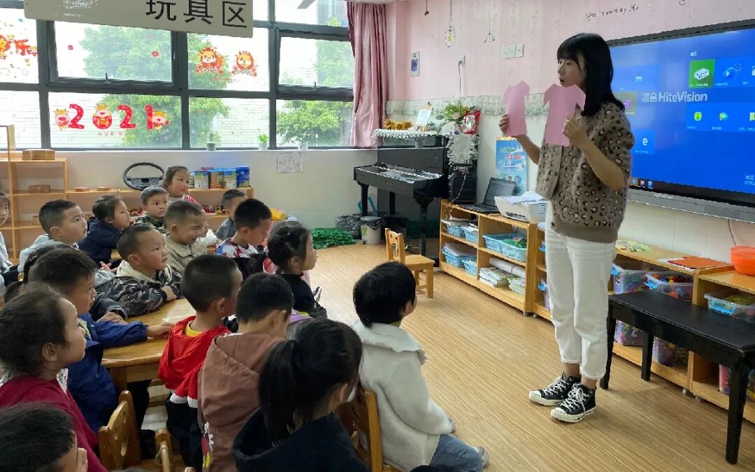 以爱促发展,做一个积极,向上的幼教人。 以“追随幼儿脚步,捕捉幼儿兴趣点,深入课程游戏化精神”、提升教师的教育教学能力为目标,市实验高新区分园基于班本主题游戏下生成的小组活动,进行了二次磨课研讨。 在磨课研讨开始前,老师们针对自己班级的幼儿和游戏现状分析、剖析问题、价值挖掘,从幼儿的兴趣点出发,以当前问题为抓手,设计生成小组活动,以丰富幼儿经验,促进幼儿游戏的延续和提升。研讨接下来,我们一起走进市实幼高新区分园的“研”途~01《有趣的多米诺骨牌》—大一班科学活动《有趣的多米诺骨牌》——鲁瑶老师教学目标:1、探索骨牌的多样排法及与机关材料的组合玩法,并大胆交流自己的发现。2、能与同伴合作,体验骨牌游戏带来的乐趣,有进一步探究的欲望。02《永别了,袜子》—大一班语言活动《永别了,袜子》——王舒老师教学目标: 1、喜欢故事,体会对朋友依恋的感情,尝试说说自己的友情。 2、乐意帮助寻找“袜子”,并仔细解读画面,提高观察、记忆等综合能力。03《敲拓染》—大二班艺术活动《敲拓染》——陈诗兰老师教学目标: 1、 欣赏多种形式的拓染作品,感受拓染奇妙、多变的艺术美,愿意用语言大胆表达自己的理解。 2、尝试用滚印、添画的方法,制作植物印染。04《有趣的尺子》—大二班数学活动《有趣的尺子》——潘佳丽老师教学目标: 1、认识尺子,知道尺子上有标准刻度,可以用来测量长度,知道尺子的单位是厘米。 2、初步掌握正确的测量方法和记录方法。05《认识整点、半点》—大三班数学活动《认识整点、半点》——李佳馨老师教学目标: 1、知道分针走一圈、时针走一格就是一小时。 2、能说出钟表表盘的结构,会看整点和半点,能正确认读。