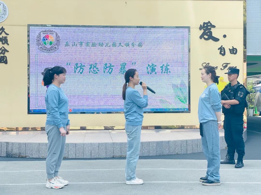 为加强幼儿园安全工作,保障幼儿在园的人生安全,进一步提高全园教职工遇到突发性安全伤害事件时的应变能力以及自救自护、保护幼儿有效逃生避险的能力。2021年5月7日,乐山市实验幼儿园久顺分园携手乐山市特巡警支队特警大队,联合开展应对突发性安全伤害事件“防恐防暴”演练活动。