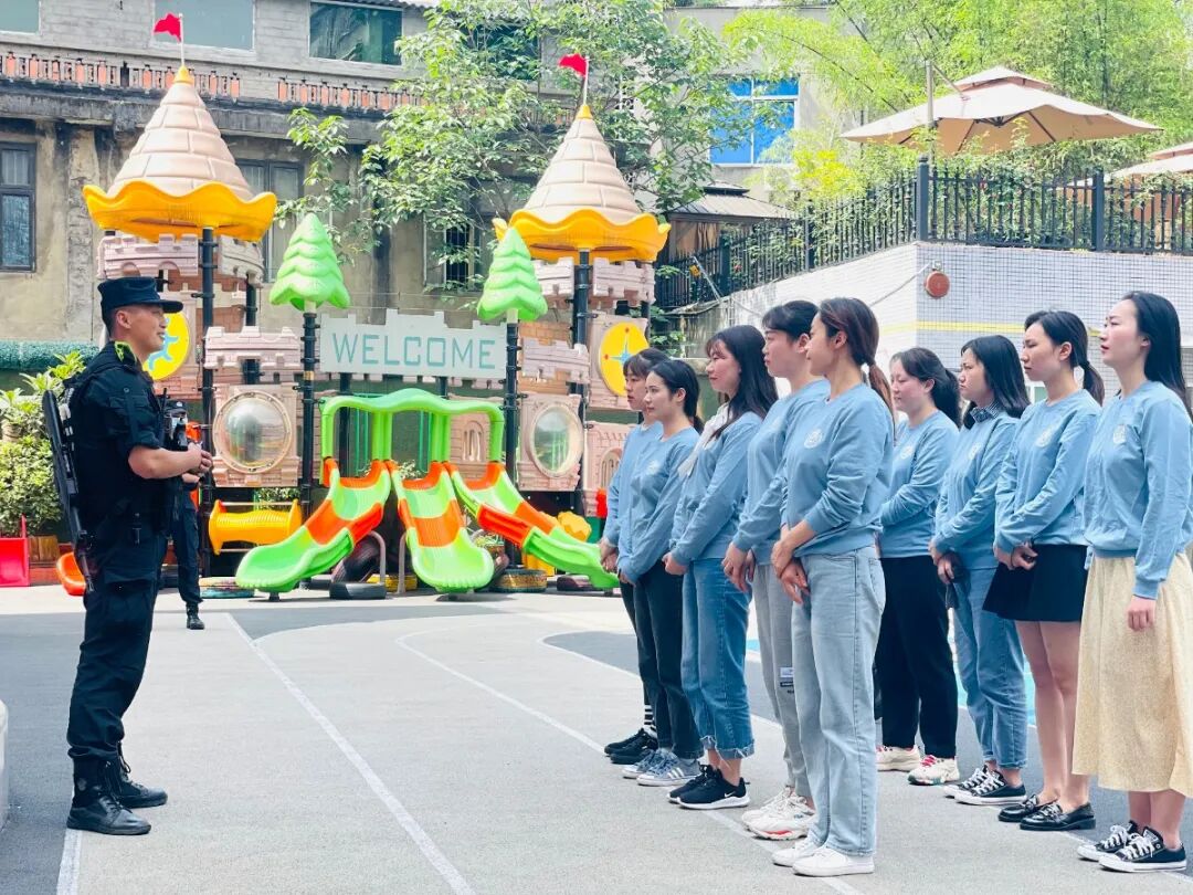 演练活动结束后,乐山特巡警支队特警大队还耐心细致的为我园教职工讲解一些防暴工具的使用方法及一些简单的抵御歹徒的自救方法及招式,提升了我园教职工处理防控防暴意识及合理应对能力,为我园营造更好的安全育人环境提供有力保障。