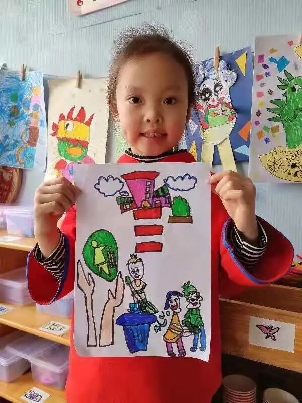 周昱艾林说:我们要保护环境卫生,让我们的家园就像美丽的世界一样。