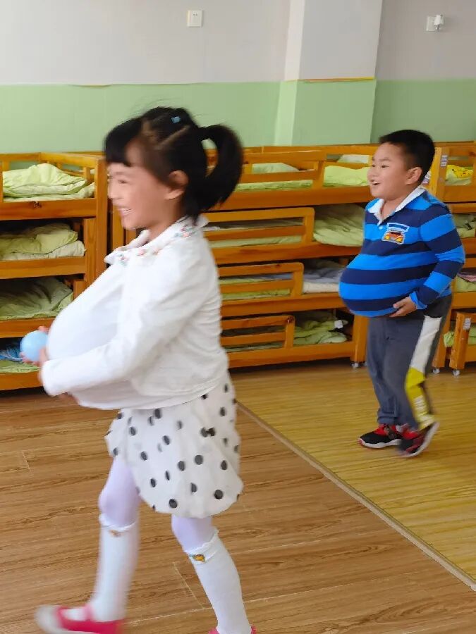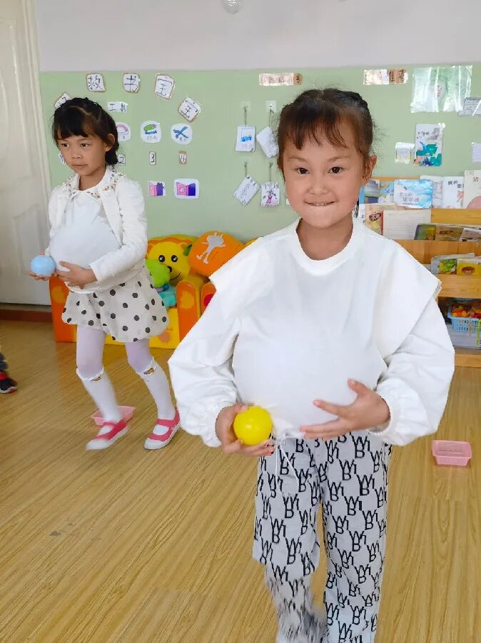 在游戏中孩子们深刻的体会到妈妈怀胎十月不容易与辛苦,知道“大大的肚子”中孕育“小小的生命”是多么神奇的事情。