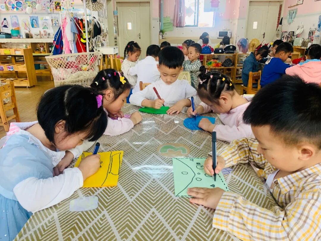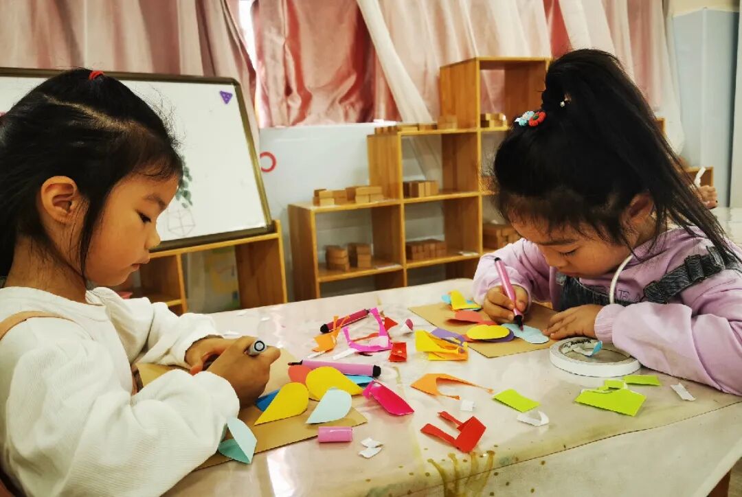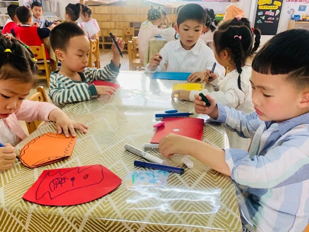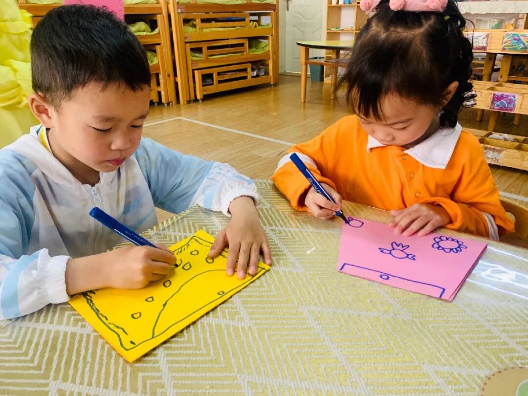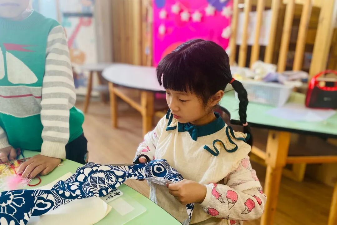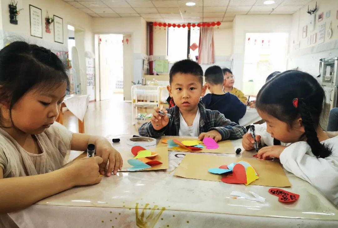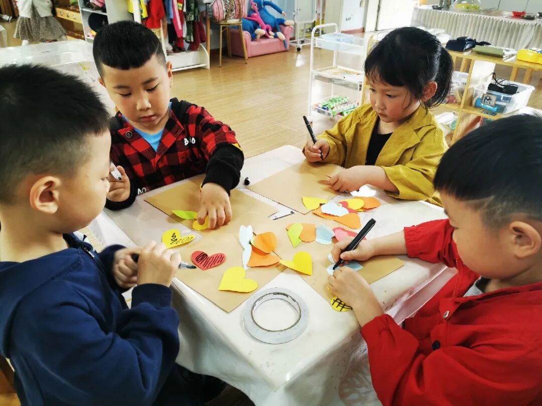 孩子们用稚嫩的小手,专注的眼神,一剪一贴都是爱的表现。