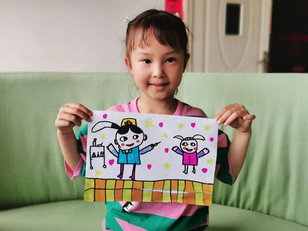 冯可伊说:我觉得护士阿姨最漂亮了,我长大了也想当护士。