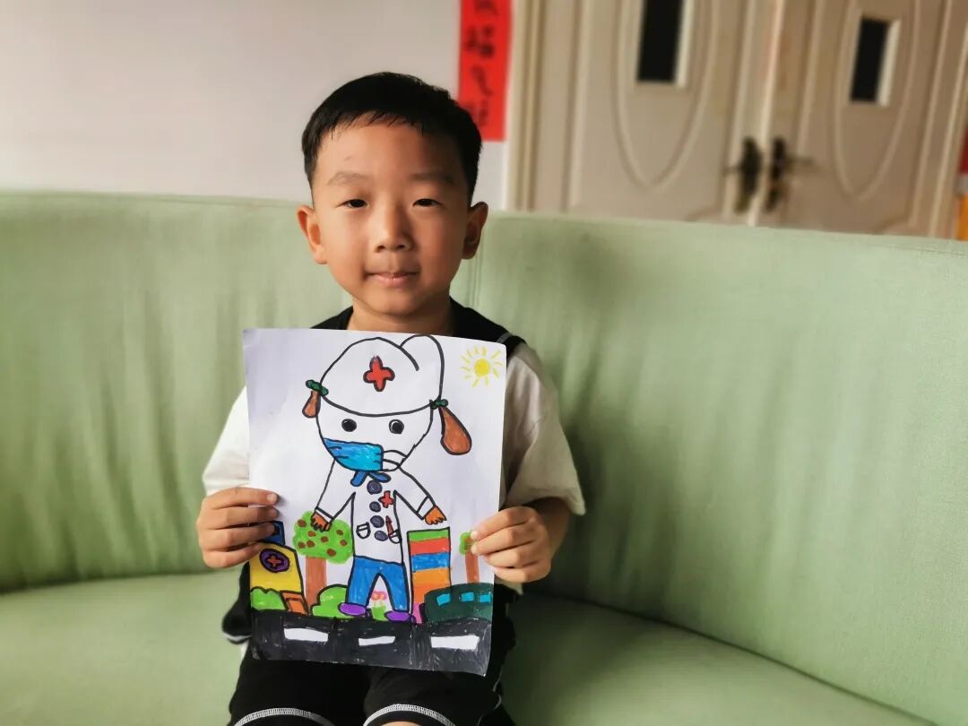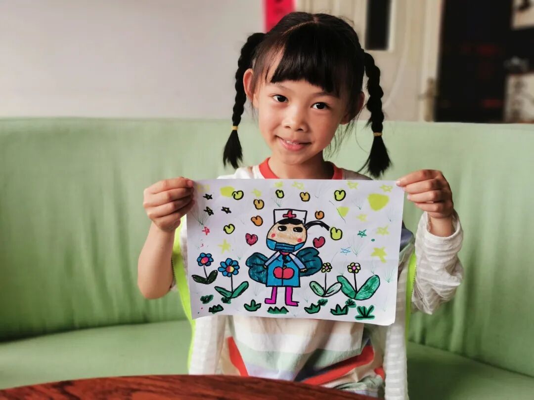 万卿程说:我觉得护士阿姨就像天使一样,他们也很厉害,帮我们打败病毒。