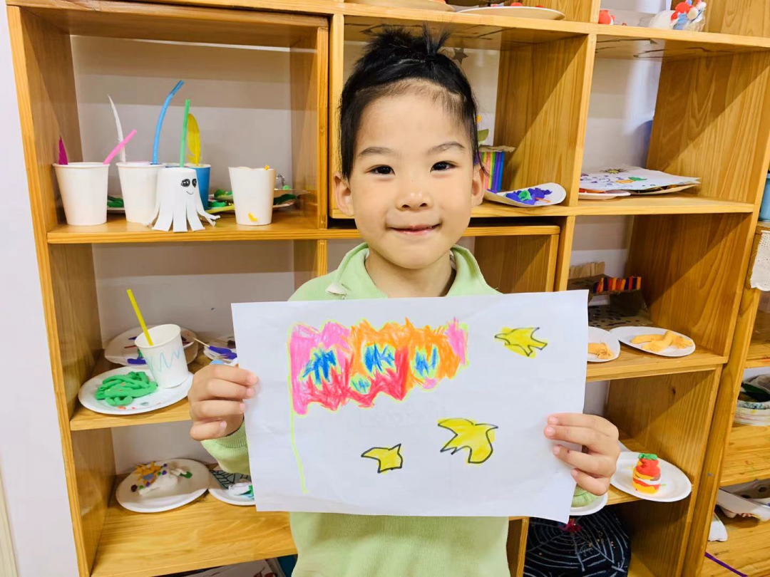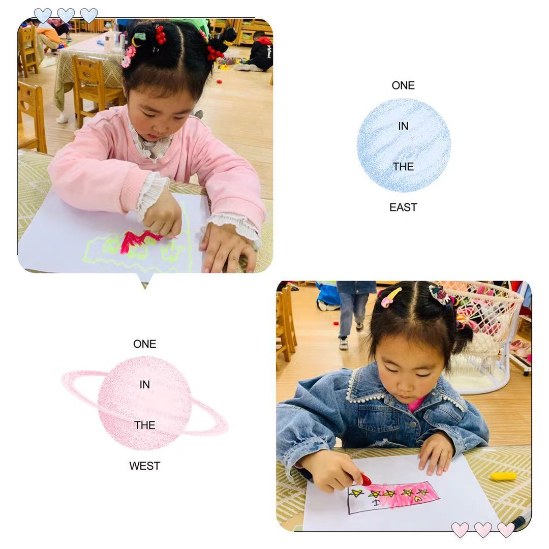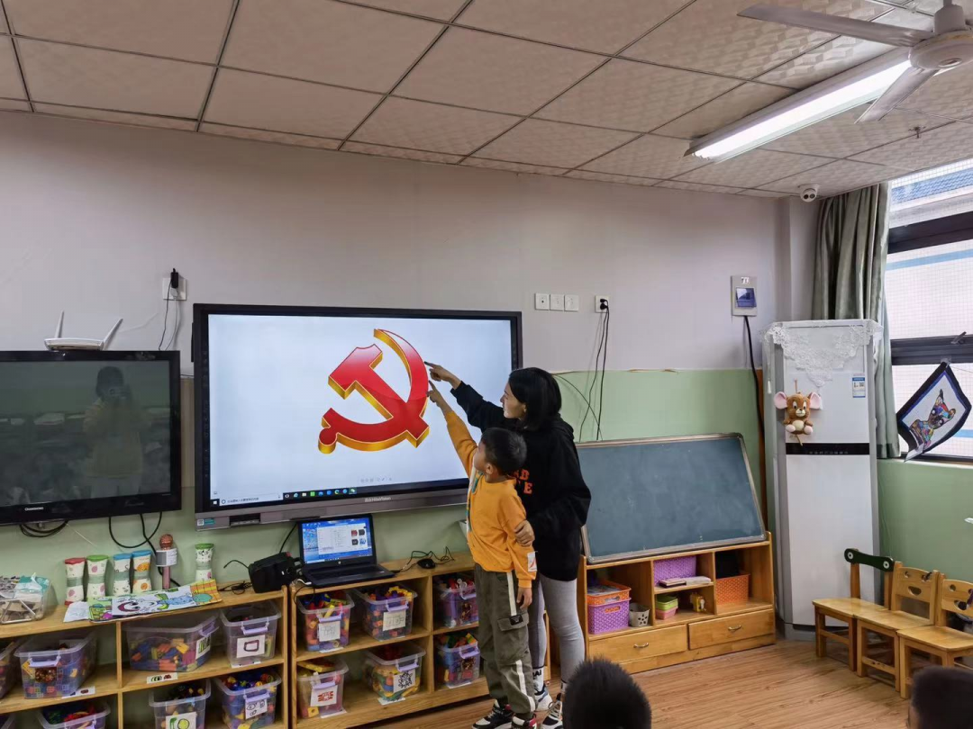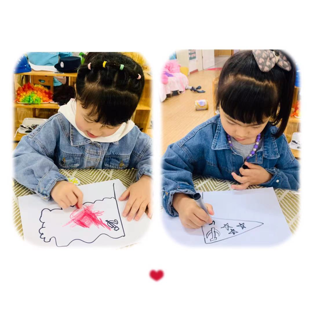 孩子们还通过手里的彩笔,画党旗,在一点一滴的过程中,他们认识党旗、了解党旗,知道党旗是中国共产党的象征和标志,最后和党旗合影,一张张笑脸燃起宝贝们对党最真挚的情感。