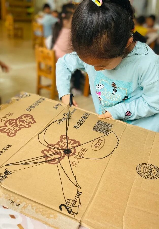 瞧,孩子们为了呈现出完美的童话剧,正在精心的制作各种道具呢。