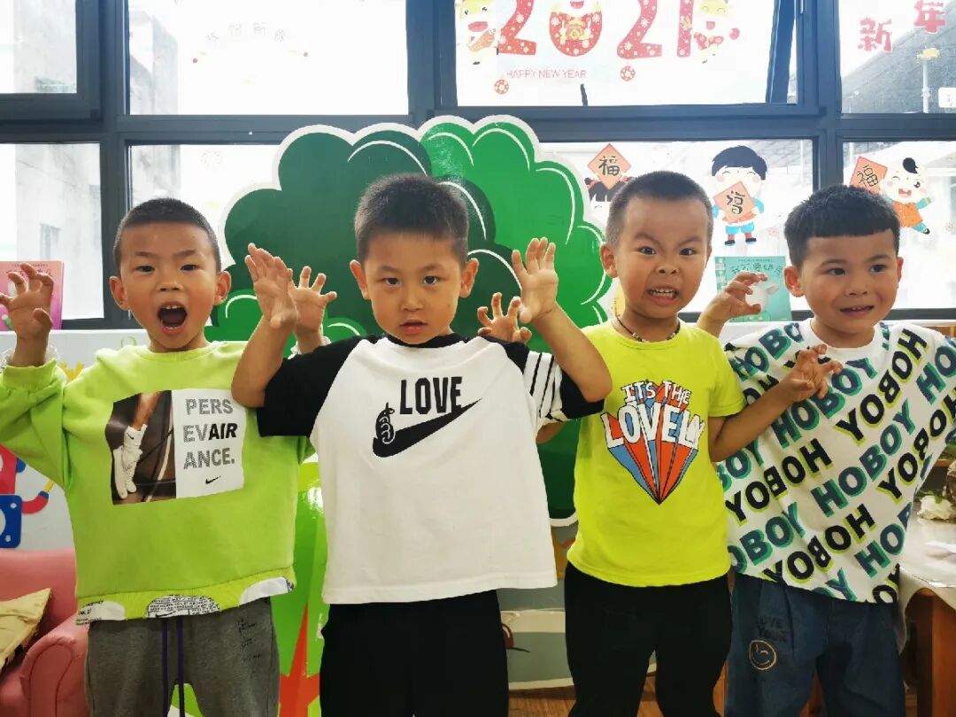 孩子们非常喜欢这个有趣的故事。老师为了追随孩子们的兴趣点,将《没有牙齿的大老虎》作为中二班童话剧表演的主题。
