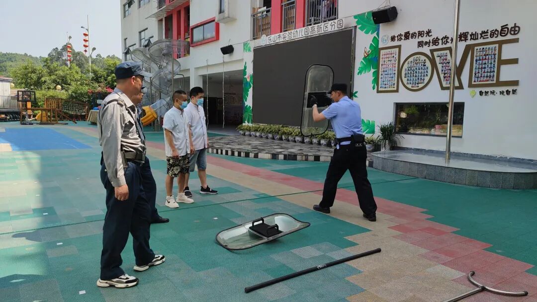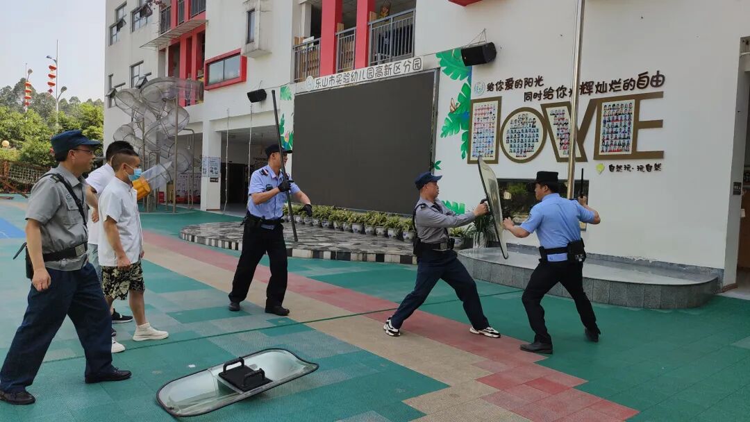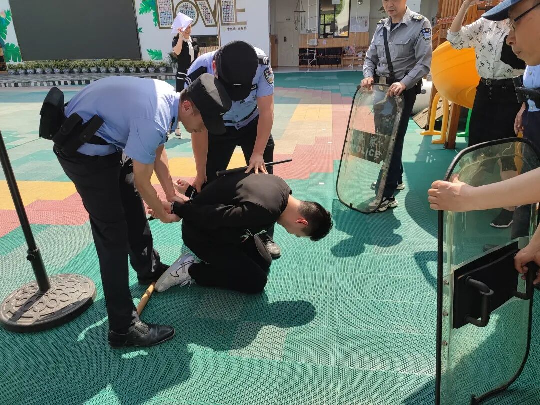 为有效防范突发暴力事件,增强全园师生的安全防护意识、应对突发暴力事件的反应能力和自救互救的本领,提高教师和各部门之间的协同能力及应急疏散幼儿、保护幼儿逃生避险的能力,加强园所安保人员面对突发暴力事件时的应变能力和防控技能,提升幼儿园处置突发事件的能力。近日,市实幼高新区分园全方位开展安全教育、安全排查和有目的、有计划、有组织的防恐防暴安全演练活动。此次活动由乐山市公安局市中区分局安谷派出所为高新区分园进行实地演练。