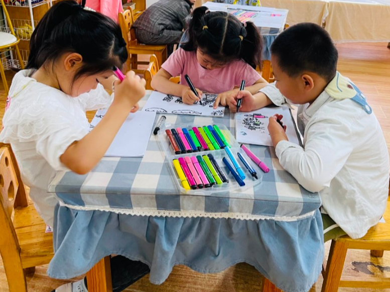 宝贝们迫不及待地开始创编小动物们的动作神情。