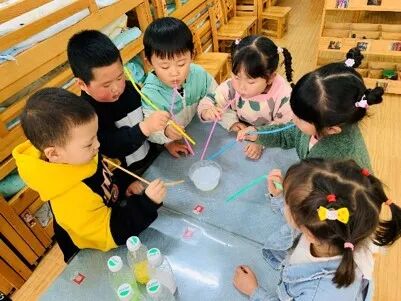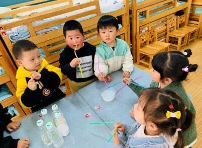 在这个过程中孩子们利用好奇心,去观察去探索并做出实际的操作进行实验、并得出结论,同时在玩耍中发现问题,分析问题和解决问题;而我们需要做的就是帮助支持孩子不断积累经验,激发幼儿体验的成就感!愿孩子们一直带着这份好奇在科学的海洋里自由徜徉!这就是小二班萌娃与泡泡的故事!