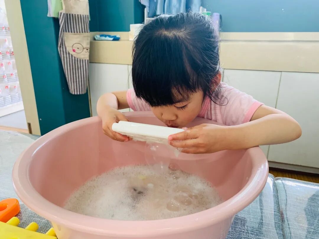 近期,小二班萌娃们像往常一样在盥洗室用肥皂进行洗手。他们搓呀搓,沛霖发现手上有好多的泡泡!”此时小朋友们都看向了自己的小手,兴奋的和身旁小伙伴讨论着关于泡泡的话题,基于萌娃们对泡泡产生的浓厚兴趣,小二班萌娃的泡泡探索之旅就此开启~~让我们一起来看看吧!