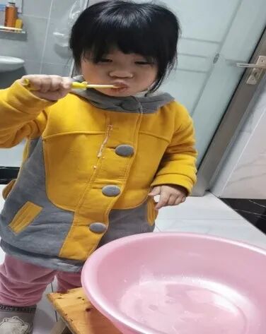 诚恩说:刷牙的时候上面有牙膏,使劲的刷一刷就有了很多的小泡泡