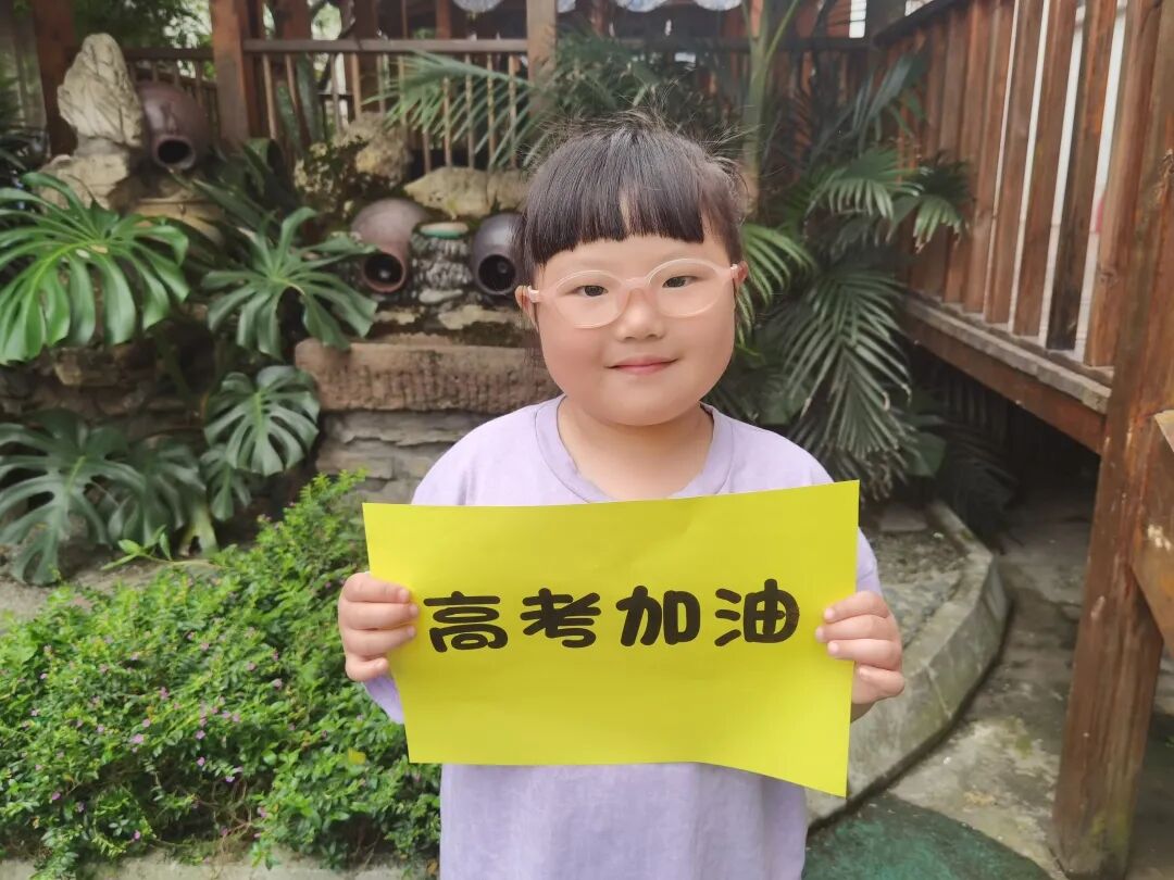 孩子们用自己的方式为高考的哥哥姐姐们献出了自己的祝福。