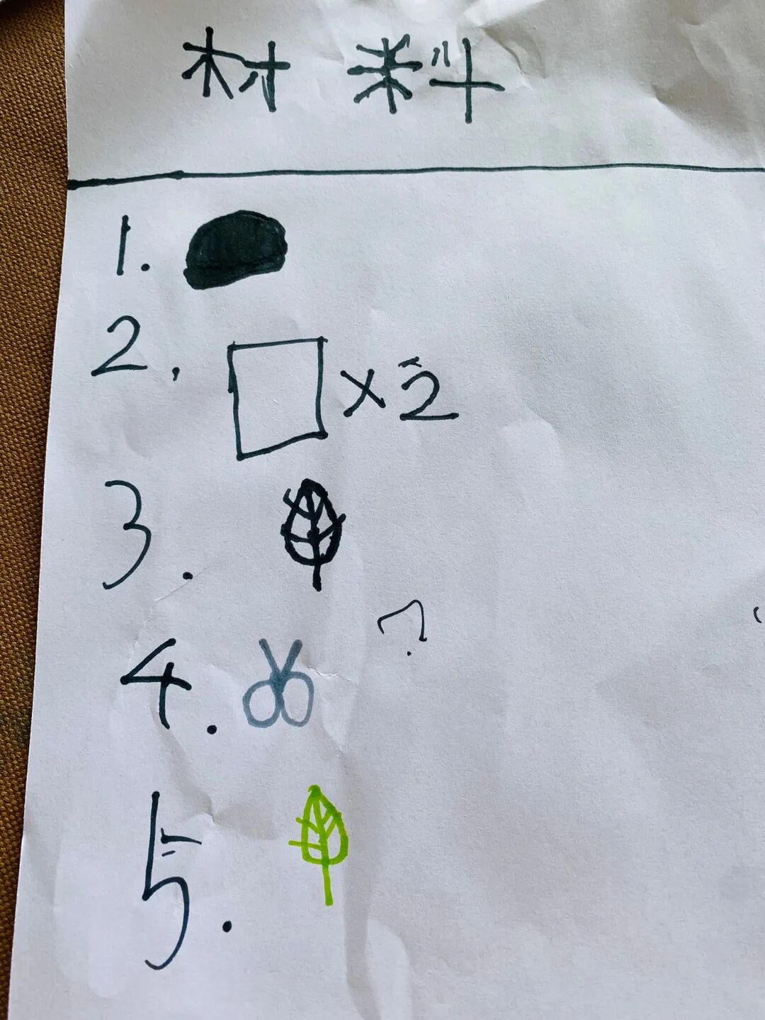 小朋友们把自己想要的材料画了出来,在幼儿园里寻找着......
