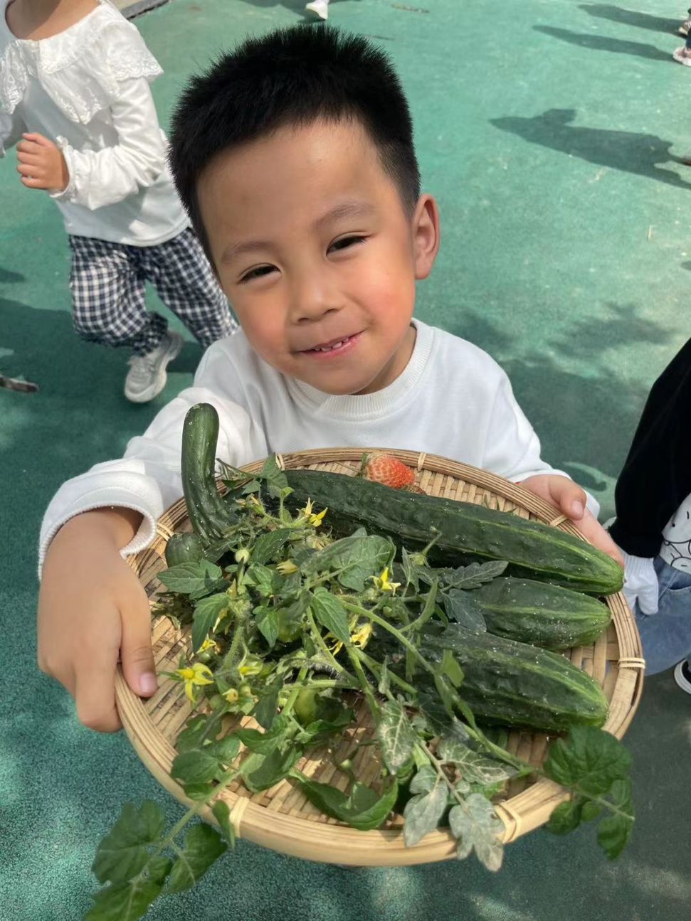 夏日,满眼满目的硕果在童年中摇曳。高新分园的孩子们正在菜地里收货蔬菜果实,希望明年有个大丰收。
