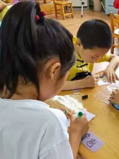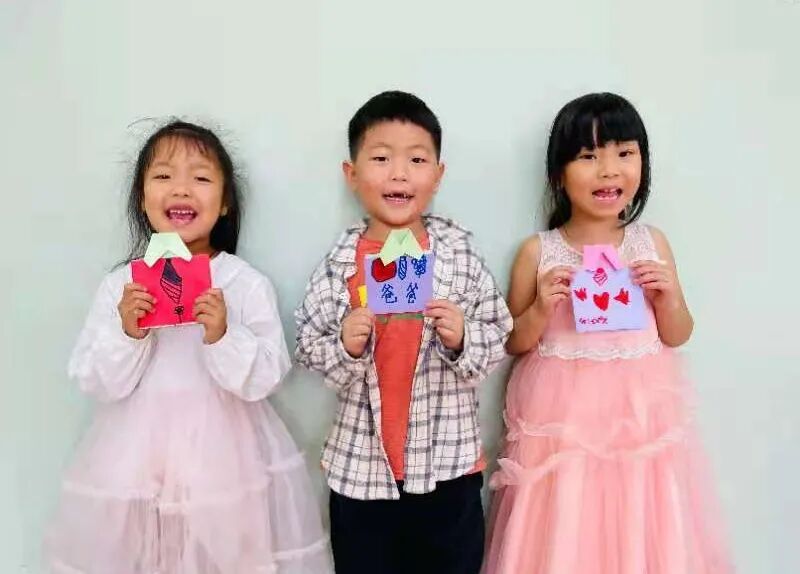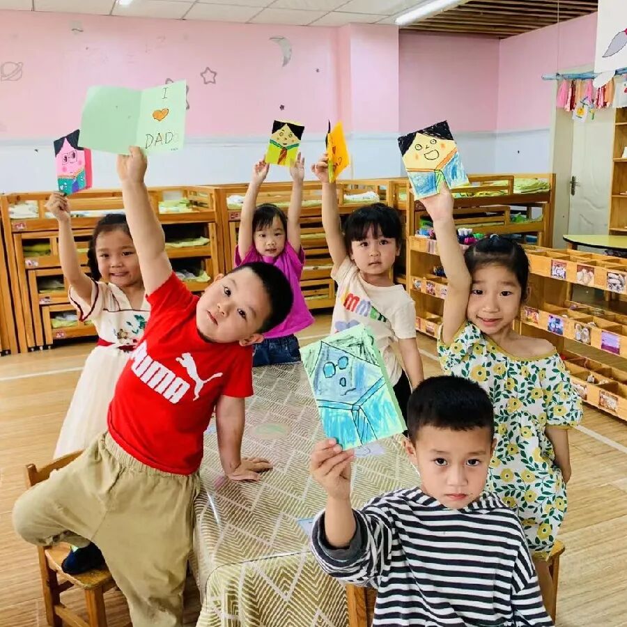 孩子们将自己心目中的爸爸模样绘制在一张张白色的卡纸上,用着自己喜欢的方式表达着对爸爸的爱意,向别人介绍自己的爸爸。