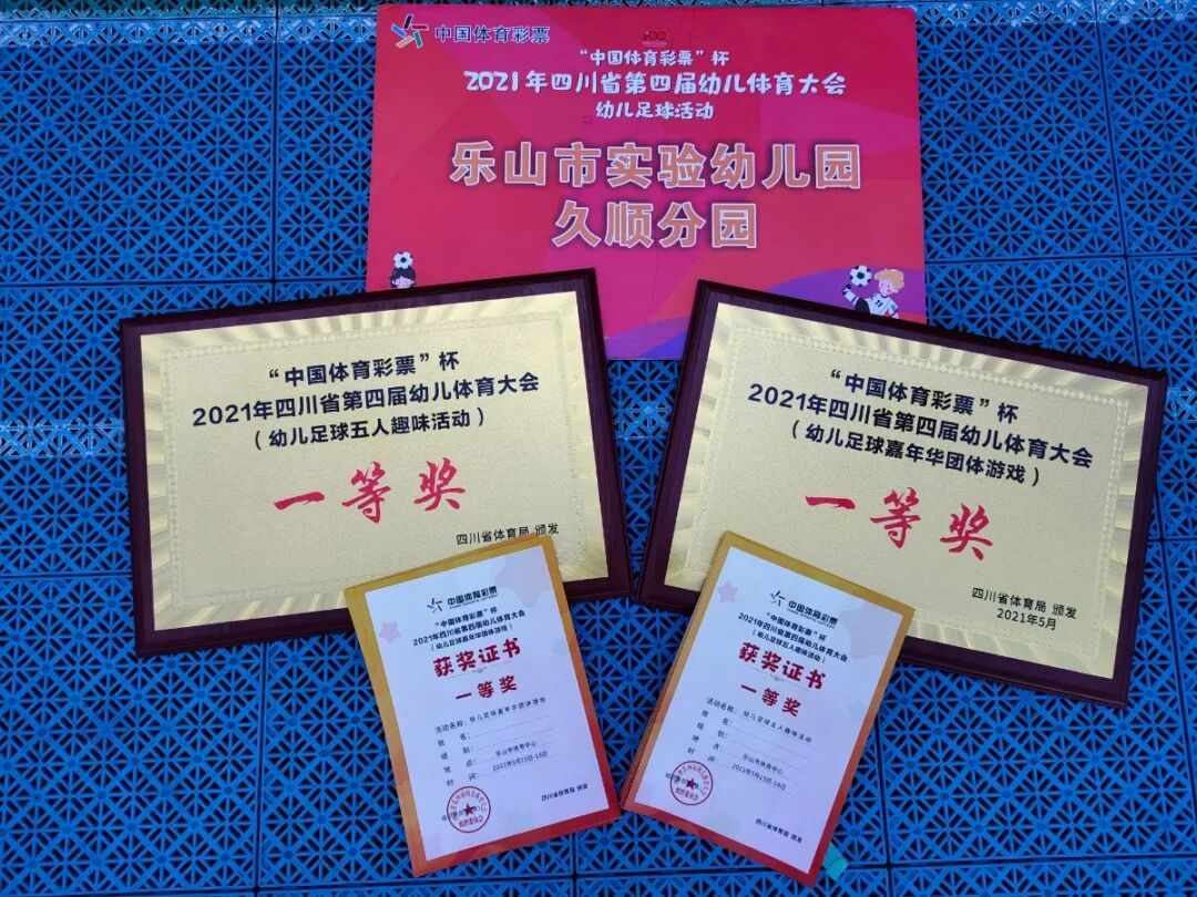 2021年5月16日,四川省第四届幼儿足球展示活动在乐山市体育中心足球场圆满落幕,乐山市实验幼儿园久顺分园与其他65支队伍一起参与此次活动。在2天7场比赛中,久顺娃们奋力拼搏,越战越勇,最终以全程大满贯的好成绩荣获一等奖。