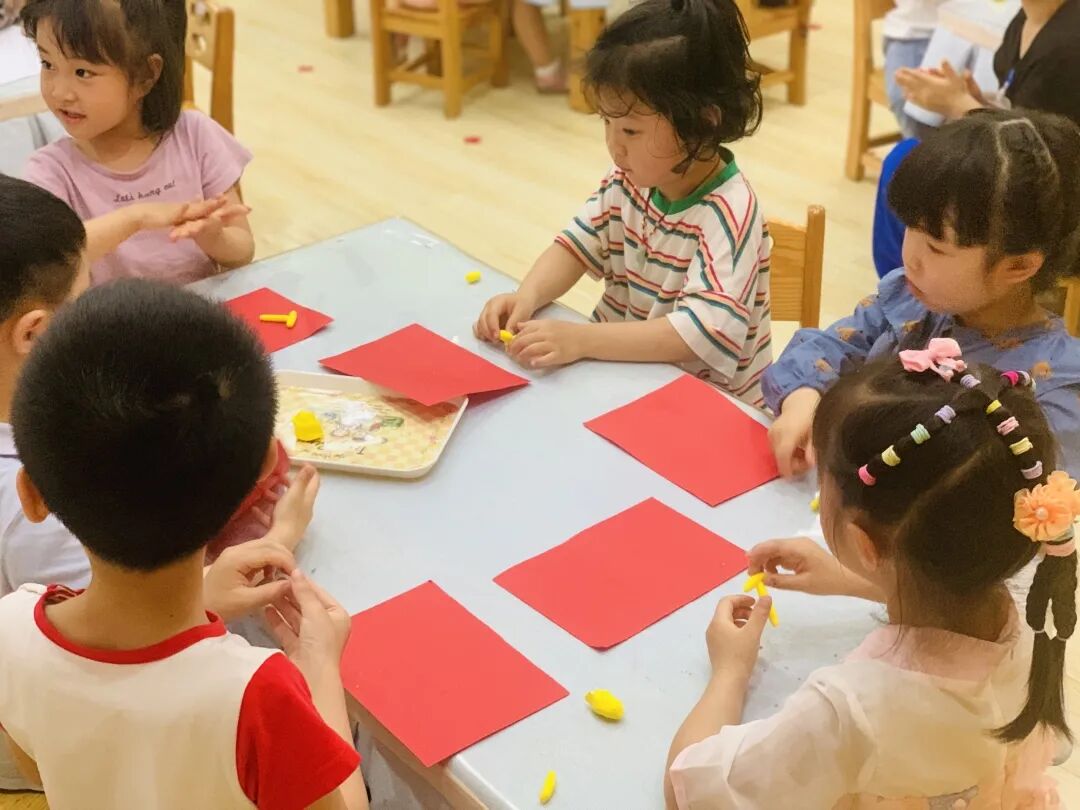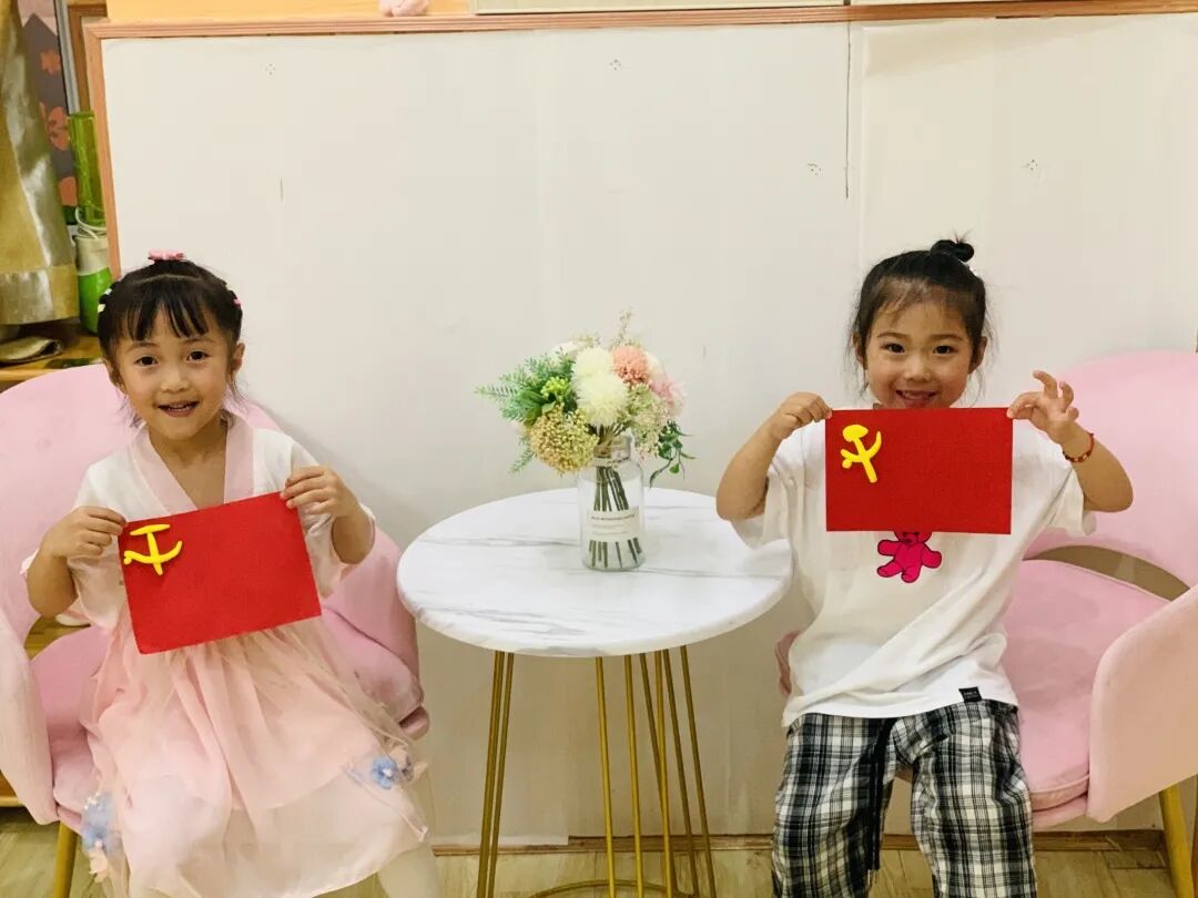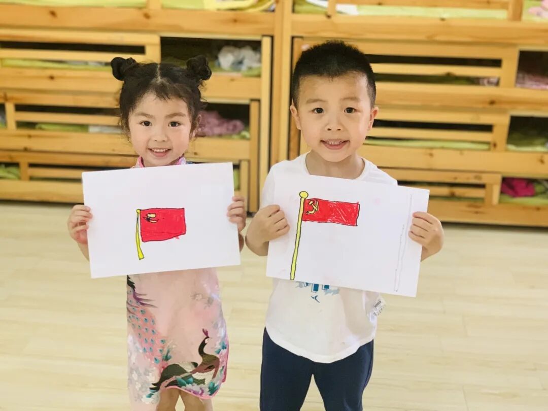 孩子们用绘画、手工的方式制作党旗,用稚嫩的小手勾勒出对党的热爱。