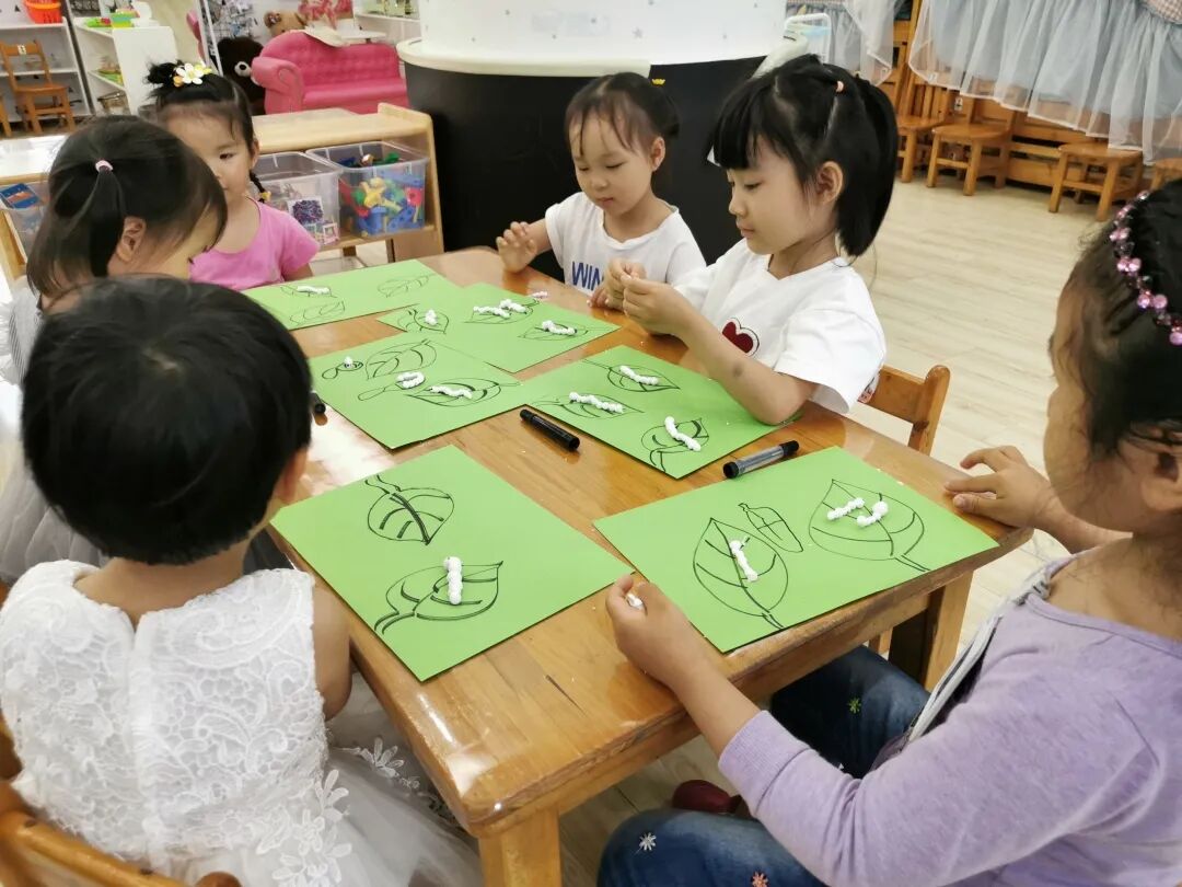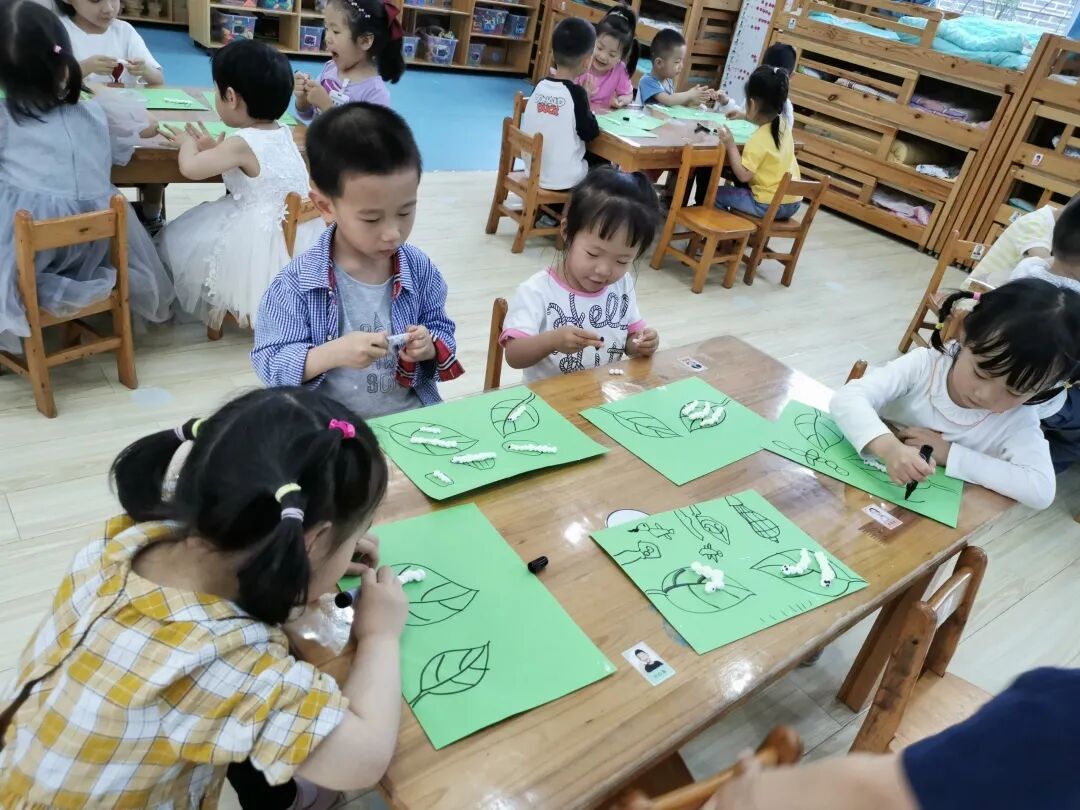 小满时节值初夏,蚕茧结成,正待采摘缫丝......,相传小满节为蚕神诞辰,孩子们制作蚕宝宝,愿蚕农伯伯蚕茧丰收。