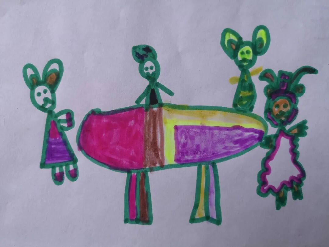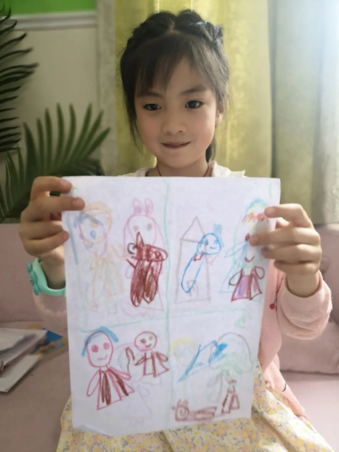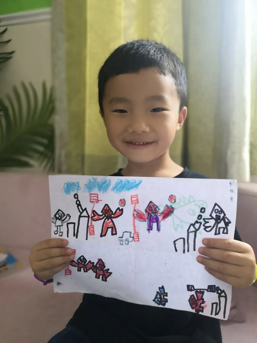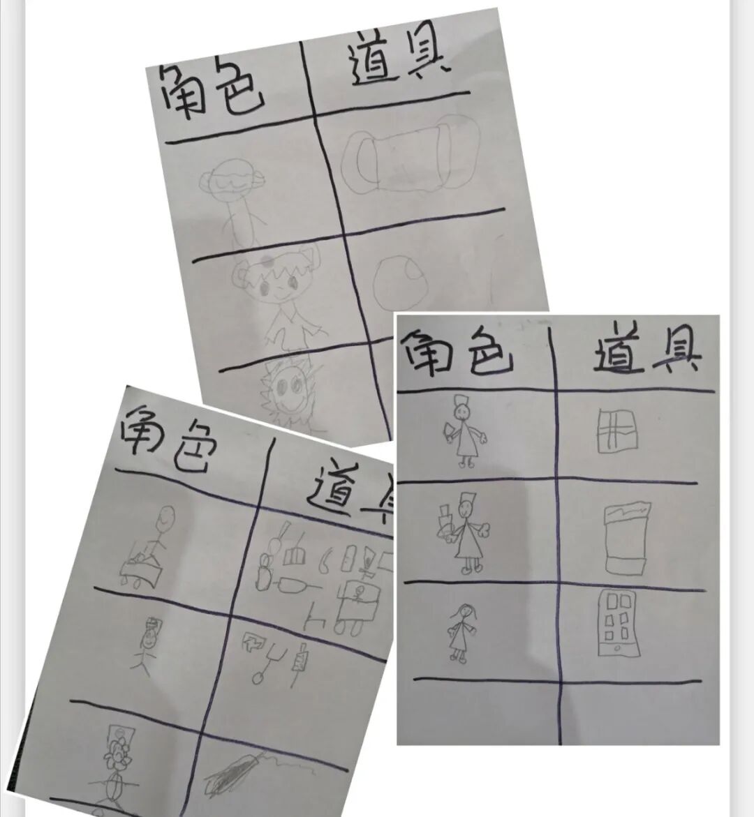 在老师与家长的支持下,孩子们在各自在家里完整地观看了《非凡守护》整部电影,第二天来到幼儿园后,试着将电影改写成适合我们的剧本。